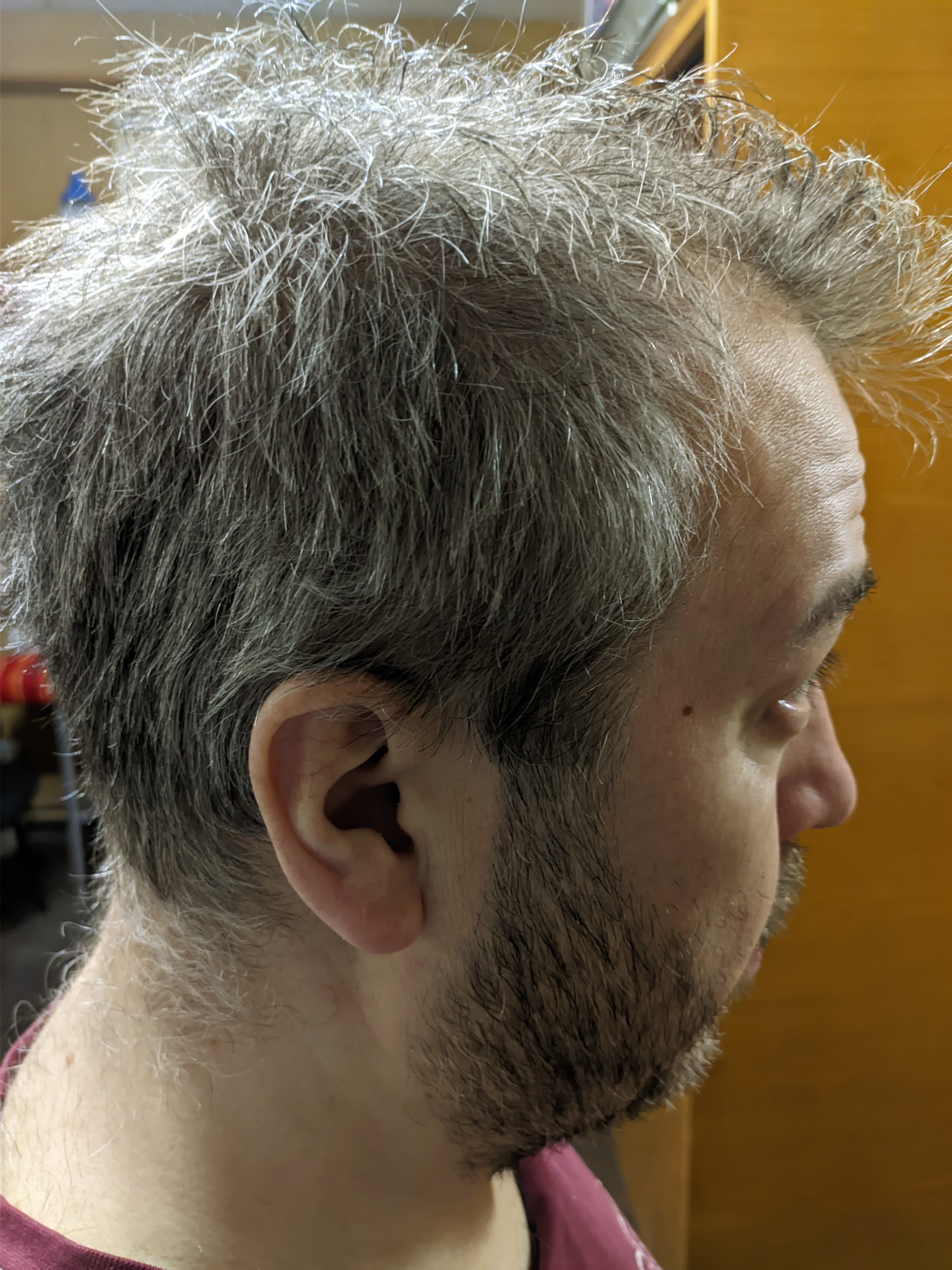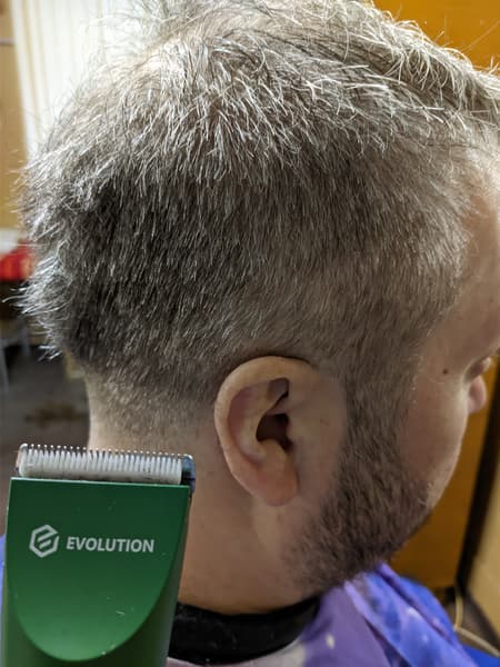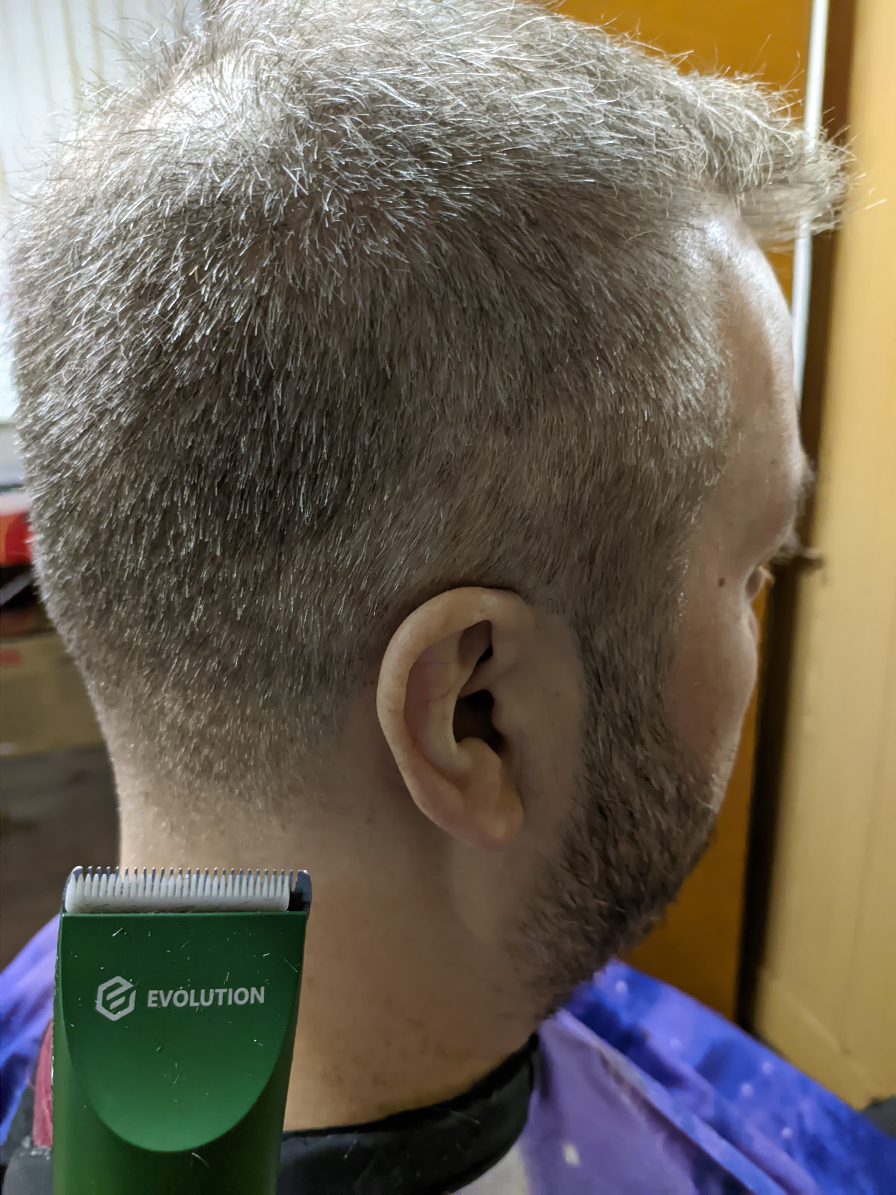 В ходе тестирования мы одновременно тестировали младшую модель — Evolution Barber ProBoost. При этом старались чтобы зоны ответственности машинок не пересекались: с одной стороны головы работали одной машинкой, с другой — второй. На фотографиях работа устройства отражена с правой стороны головы (если в комментариях не указано обратное).