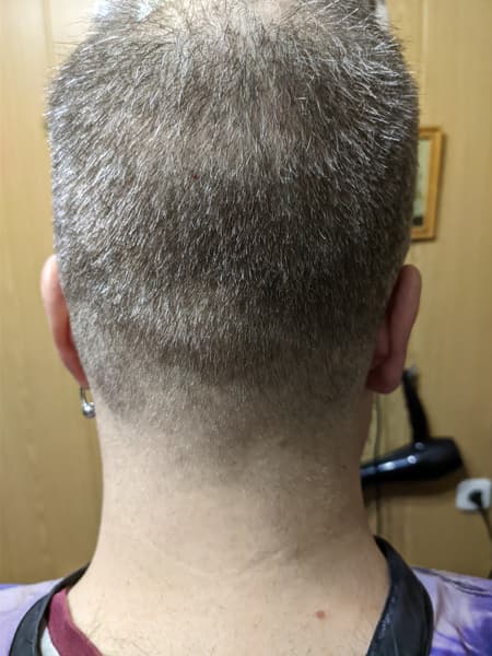 Стрижку начали с обработки зоны шеи. Вот исходное состояние.