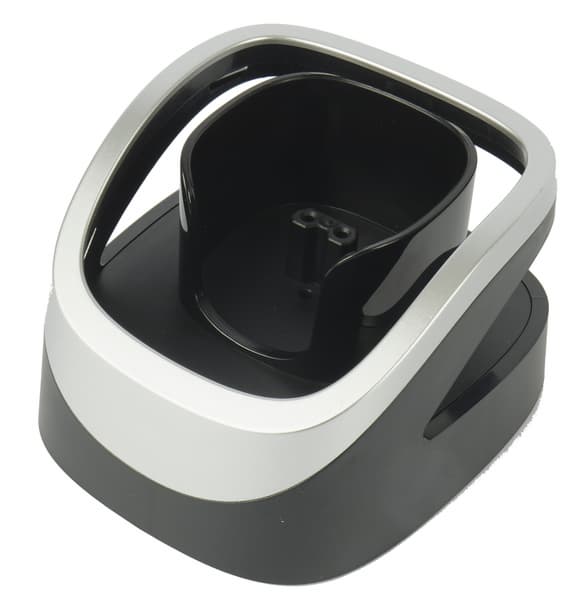 Зарядная подставка (база) сделана из пластика. Тут дизайнеры все-таки не удержались и окрасили часть под металл. Хорошо хоть без глянца. Снизу у базы имеются резиновые накладки, препятствующие скольжению. Провод подключается к базе с тыльной стороны. Машинка устанавливается сверху, при этом фиксируется не слишком уверенно: при небольшом усилии устройство начинает болтаться.