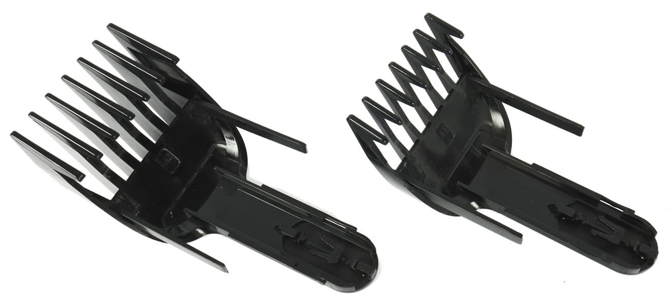 Первый гребень позволяет регулировать длину стрижки в диапазоне от 3 до 21 мм с шагом в 3 мм. Второй — от 10 до 28 мм с шагом в 3 мм.