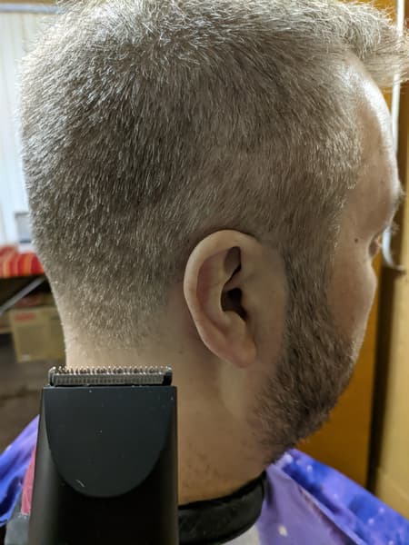 Как водится, лучше всего начать с задней части шеи (3 или 6 мм), затем перейти на затылок (12 или 18 мм), потом к боковой части головы (3 или 6 мм), после чего — подровнять волосы сверху (24 мм) и, наконец, создать контур у основания и по бокам шеи без насадки-гребня.