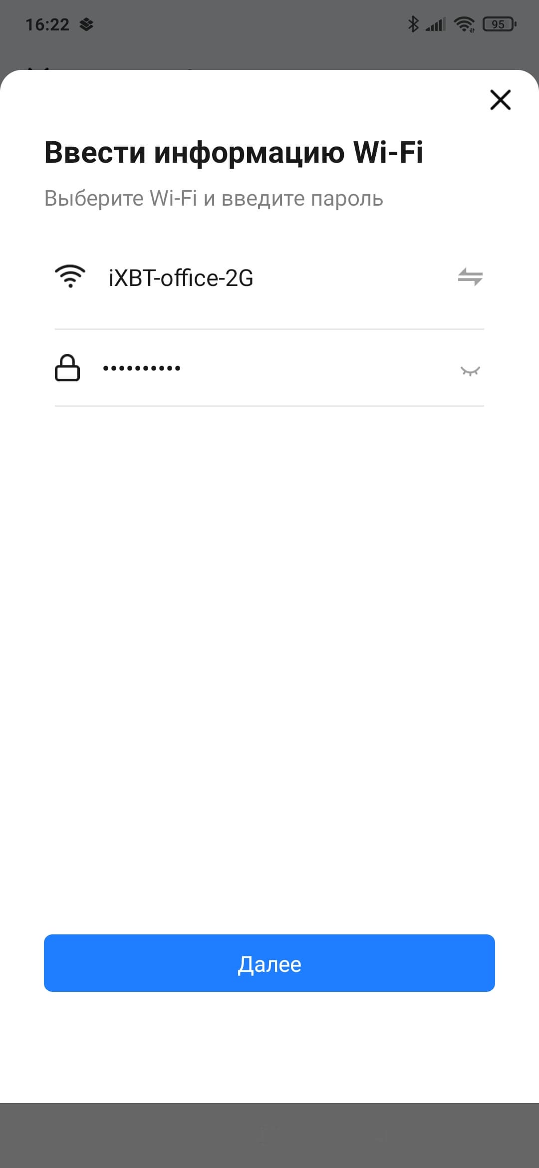При завершении регистрации нужно будет предоставить необходимые разрешения, в том числе активировать Bluetooth для соединения с устройством и включить геолокацию. После этого прибор обнаружился приложением самостоятельно, а нам осталось лишь указать параметры местного Wi-Fi-соединения.