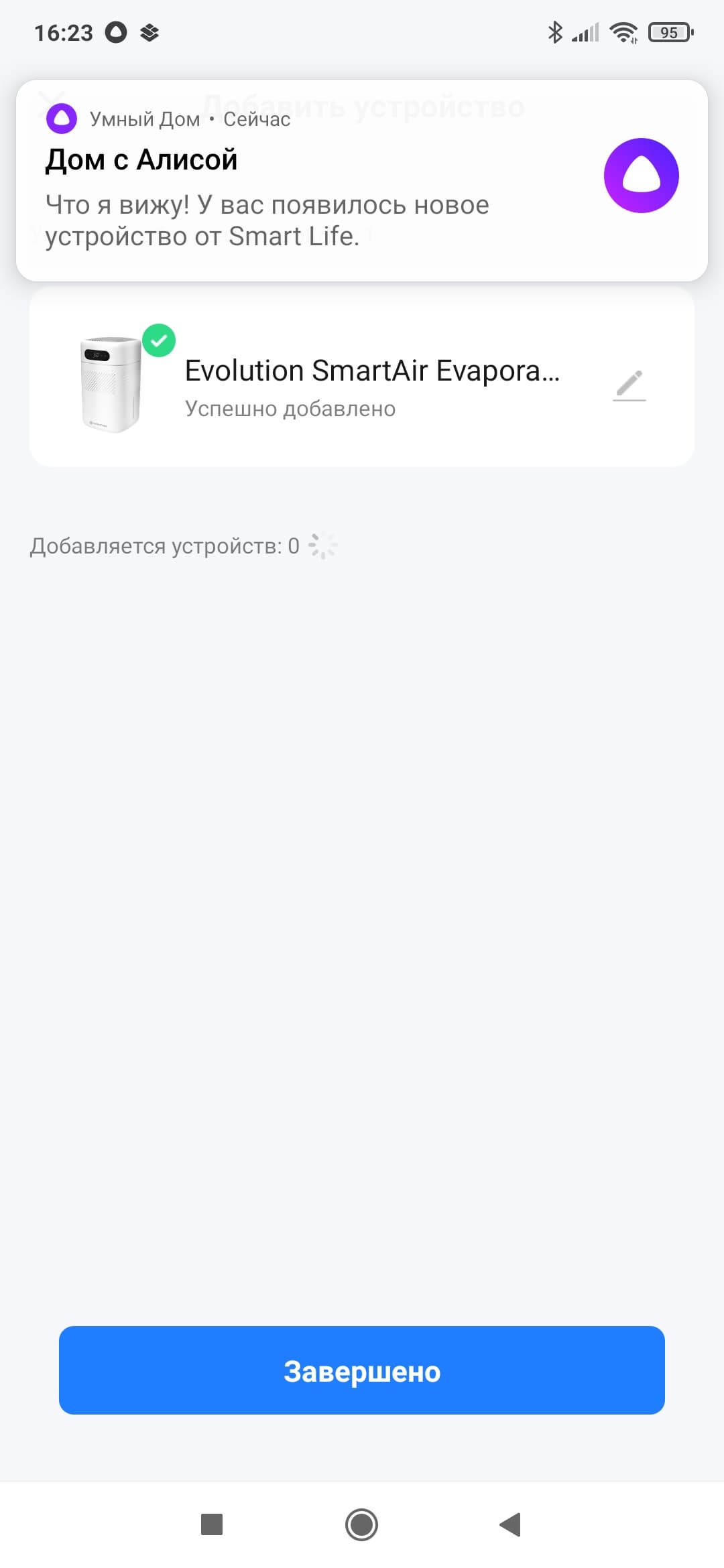Помимо приложения, мы можем управлять устройством голосом — при помощи Алисы «Яндекса». Тут всё также оказалось несложно: «Умный дом» сам обнаружил, что в доме появилось новое умное устройство, и предложил добавить его на экран с другими гаджетами.