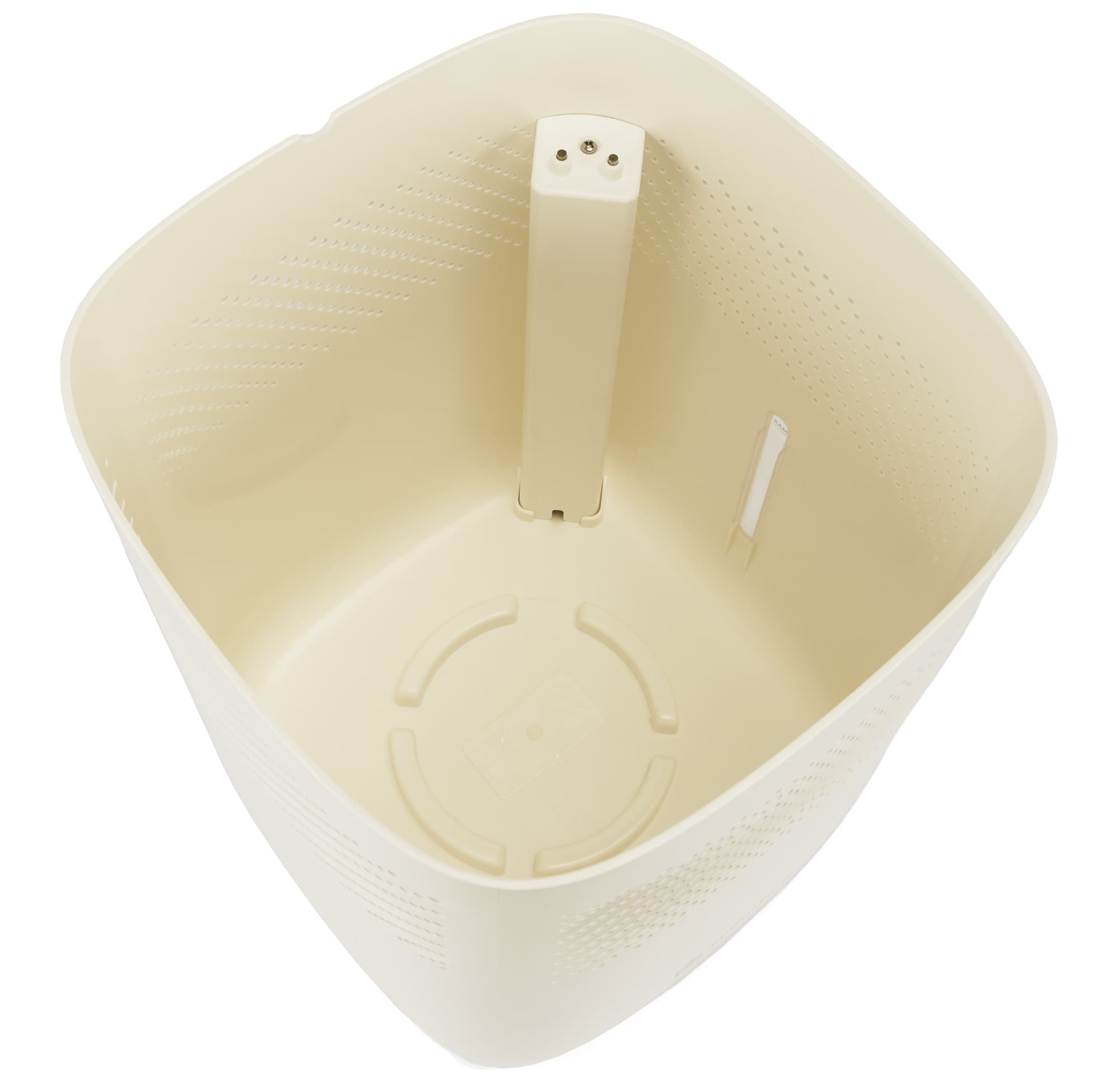 Бак, по сути, это самое обычное «ведро». На внутренней части резервуара мы видим контакты, с помощью которых подается питание на датчик отсутствия воды (он находится в нижней части бака).