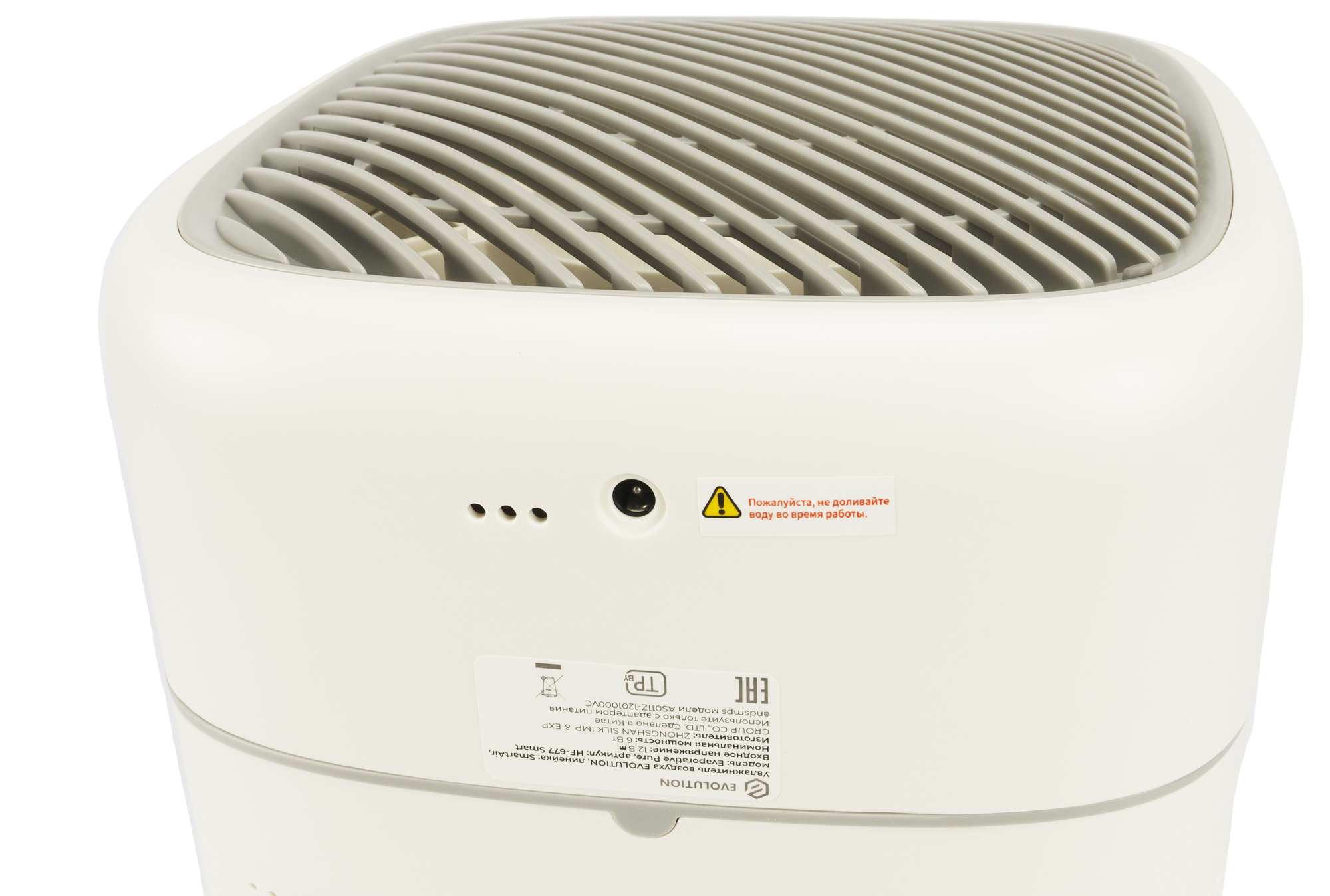Как и некоторые другие модели Evolution, данный увлажнитель работает по принципу естественного испарения: вода впитывается в фильтр и испаряется, а встроенный вентилятор обеспечивает циркуляцию воздуха.