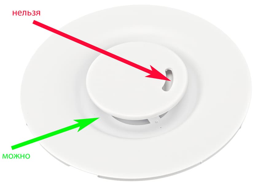 Несмотря на то, что прорези воздухозаборника не должны сообщаться с трубкой для выпуска водяного тумана, заливать воду в резервуар через воздухозаборник нужно, соблюдая несложное правило (см. фото выше).