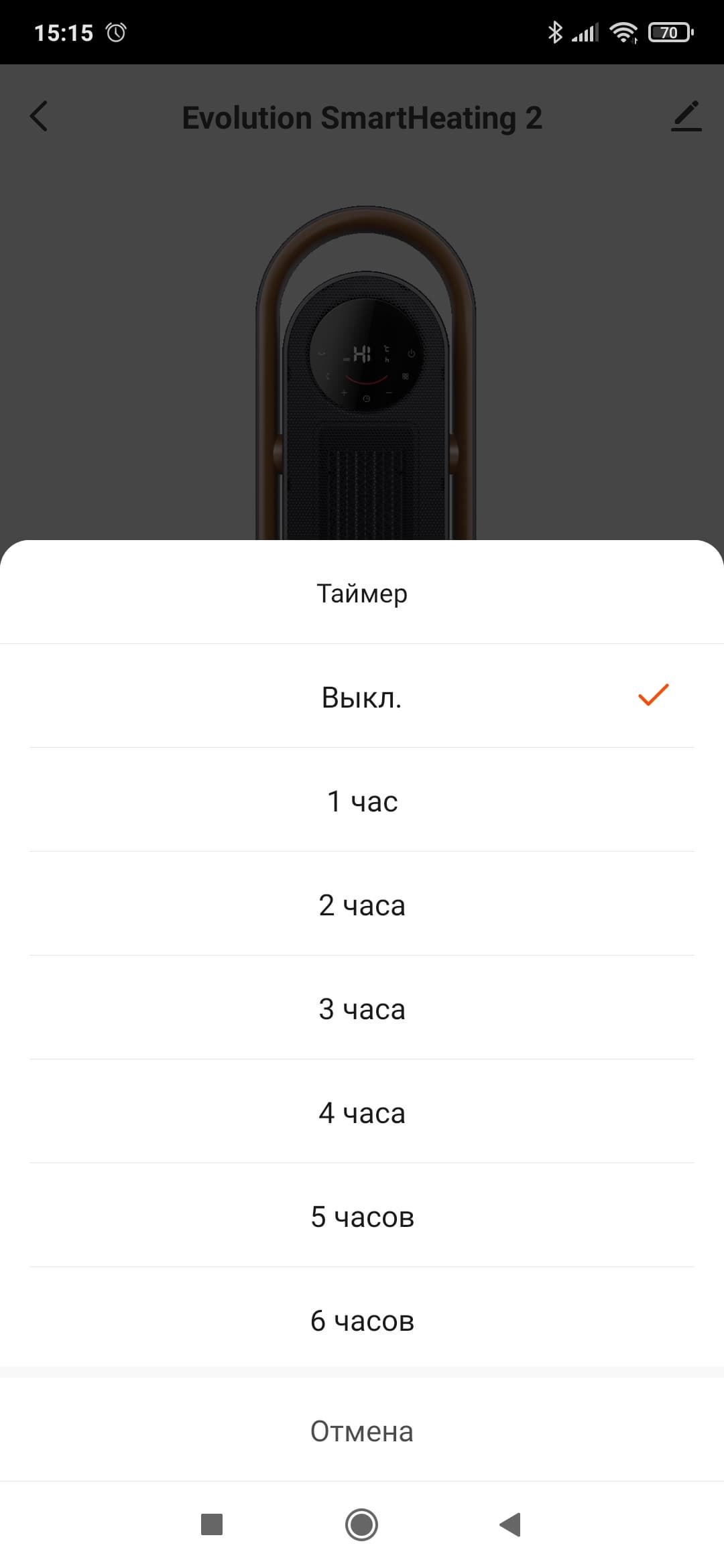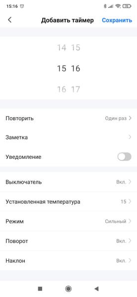 В разделе настроек мы можем установить таймер автоматического отключения прибора...