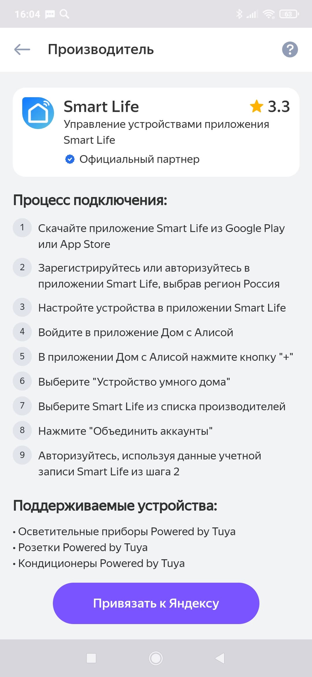 Процесс сопряжения устройства с Алисой стандартен: запускаем «умный дом», выбираем соответствующий плагин, после чего вводим данные уже имеющейся учетной записи из приложения Smart Life.