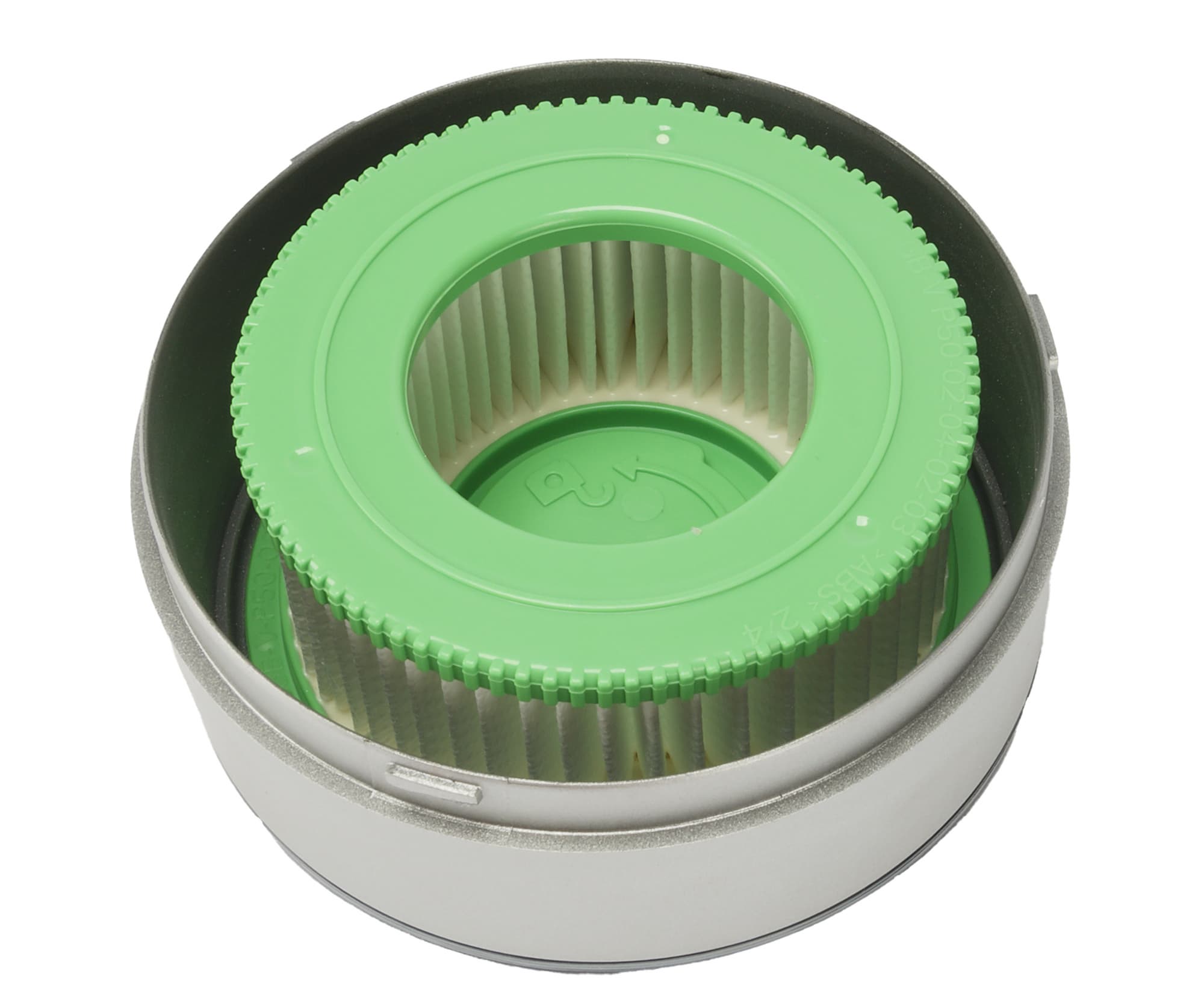 Внутри пылесборника находится съемный сотовый пластиковый фильтр, а вокруг него располагается несъемный сетчатый металлический фильтр.
