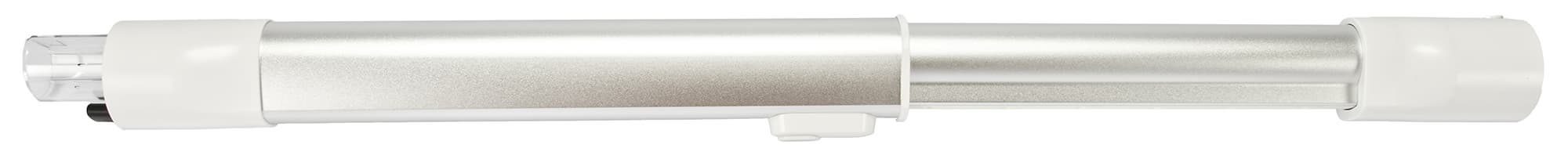 Удлинительная трубка состоит из двух частей и имеет шесть вариантов раскрытия, максимальная ее длина 71,5 см, минимальная в собранном виде — 49,5 см. Для раздвижения и складывания предусмотрена длинная белая кнопка.