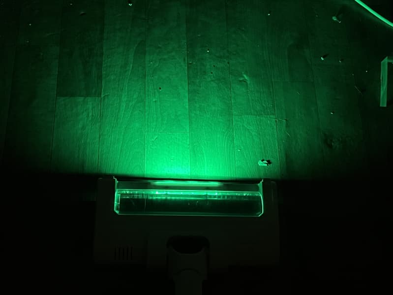 При уборке с хорошим освещением они не слишком актуальны, а вот при тусклом освещении или в темноте, яркий зеленый свет отлично обозначает весь мусор в пределах 25-30 см перед насадкой.