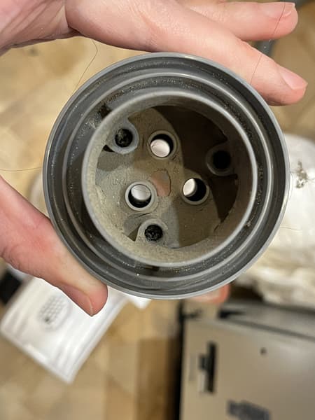 Под крышкой мы видим несъемный конусообразный синтетический сетчатый фильтр.
