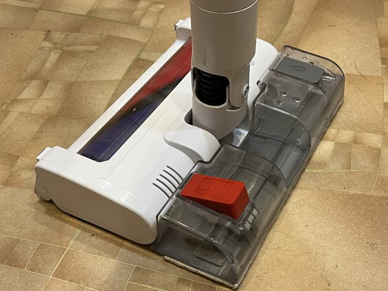 Конструкция основной щетки продуманная и хорошо поддается как движениям вперед-назад, так и более сложным маневрам с поворотами всего пылесоса или самой насадки.