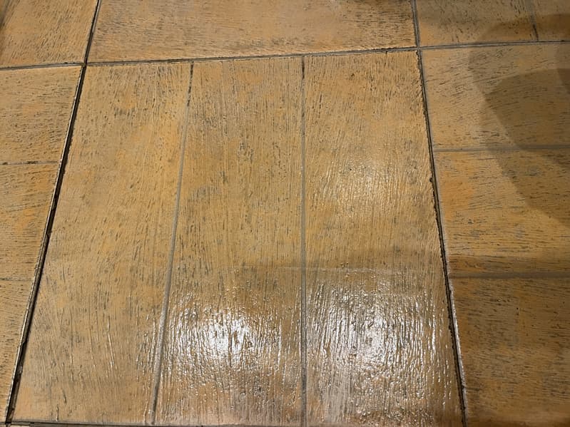 Чтобы проверить насколько хорошо пылесос справляется с загрязнениями, мы подготовили для него небольшое испытание в виде липкого пятна на кафеле от разлитой кока-колы, смешанной с корицей и подсушенной феном.