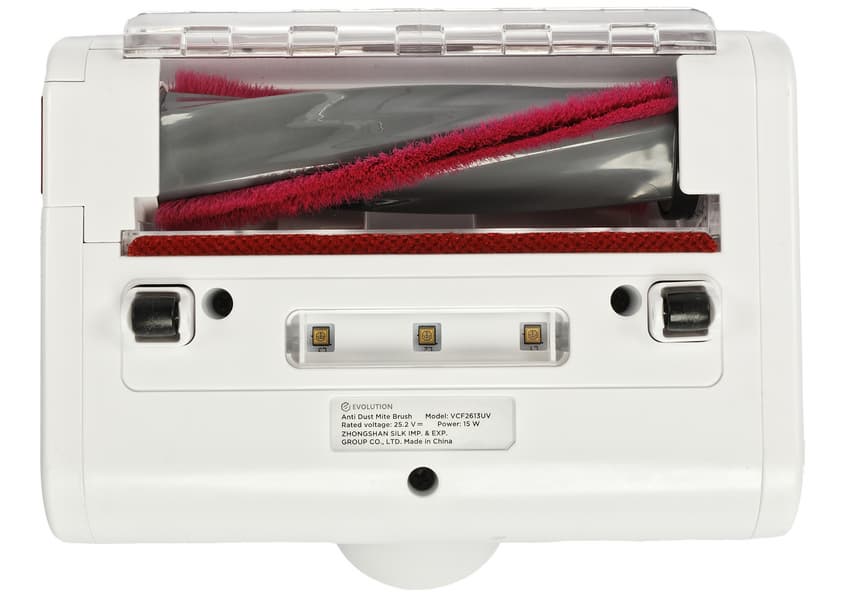 Беспроводной пылесос Evolution Smart Clean VCF2613UV Wet and Dry отличается наличием нескольких насадок, в том числе моторизованной антиклещевой щеткой с ультрафиолетовым излучателем (которая, по заявлению производителя, помогает бороться с пылевыми клещами, аллергенами и микроорганизмами), а также качественной системой фильтрации, использующей сочетание роторного и сотового фильтров с выходным HEPA-фильтром, что, также со слов производителя, позволяет улавливать даже микроскопические частички.