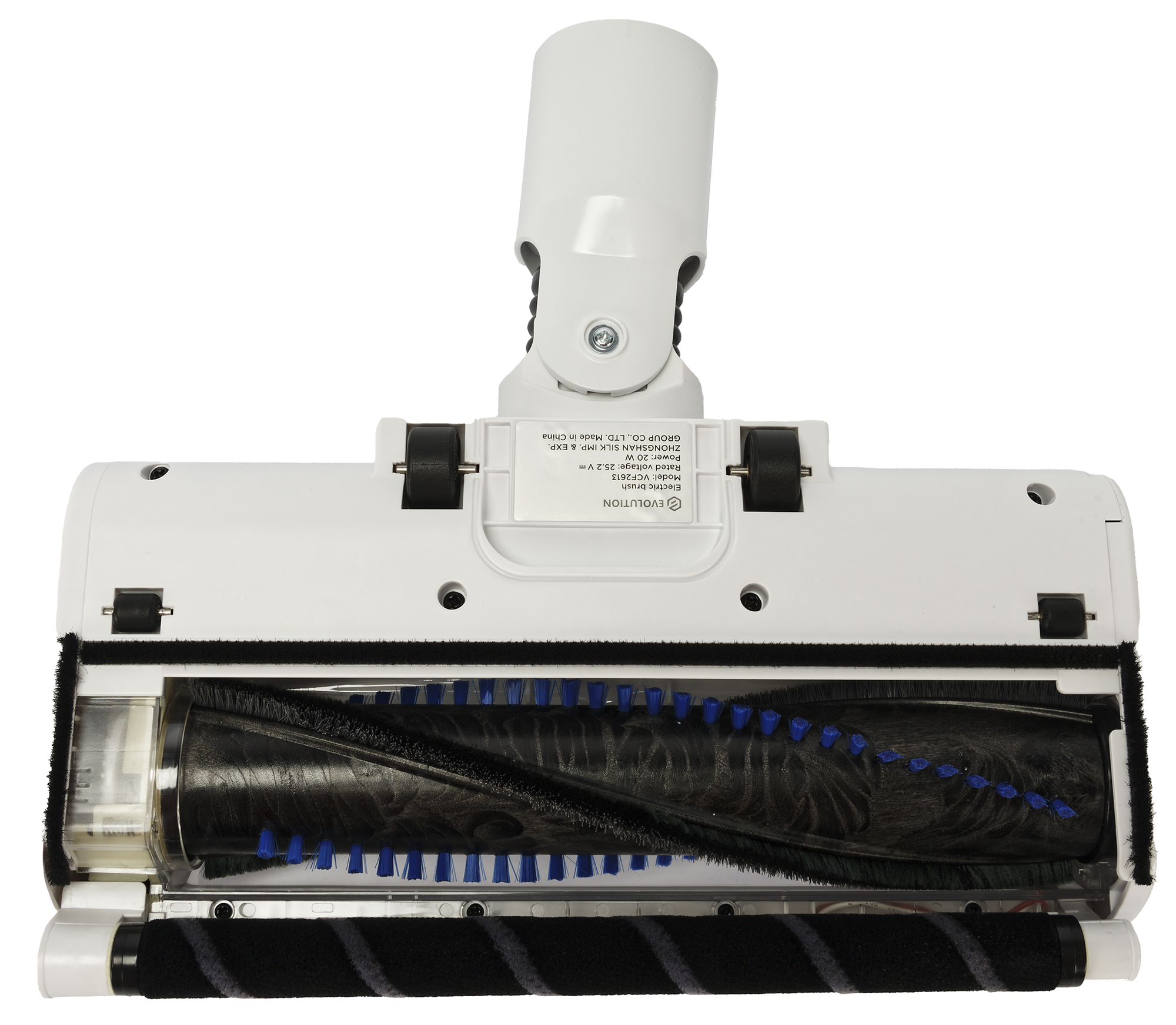 Насадка свободно движется по убираемой поверхности благодаря двум небольшим колесикам у основания. Между ними мы видим шильдик с краткой технической информацией.