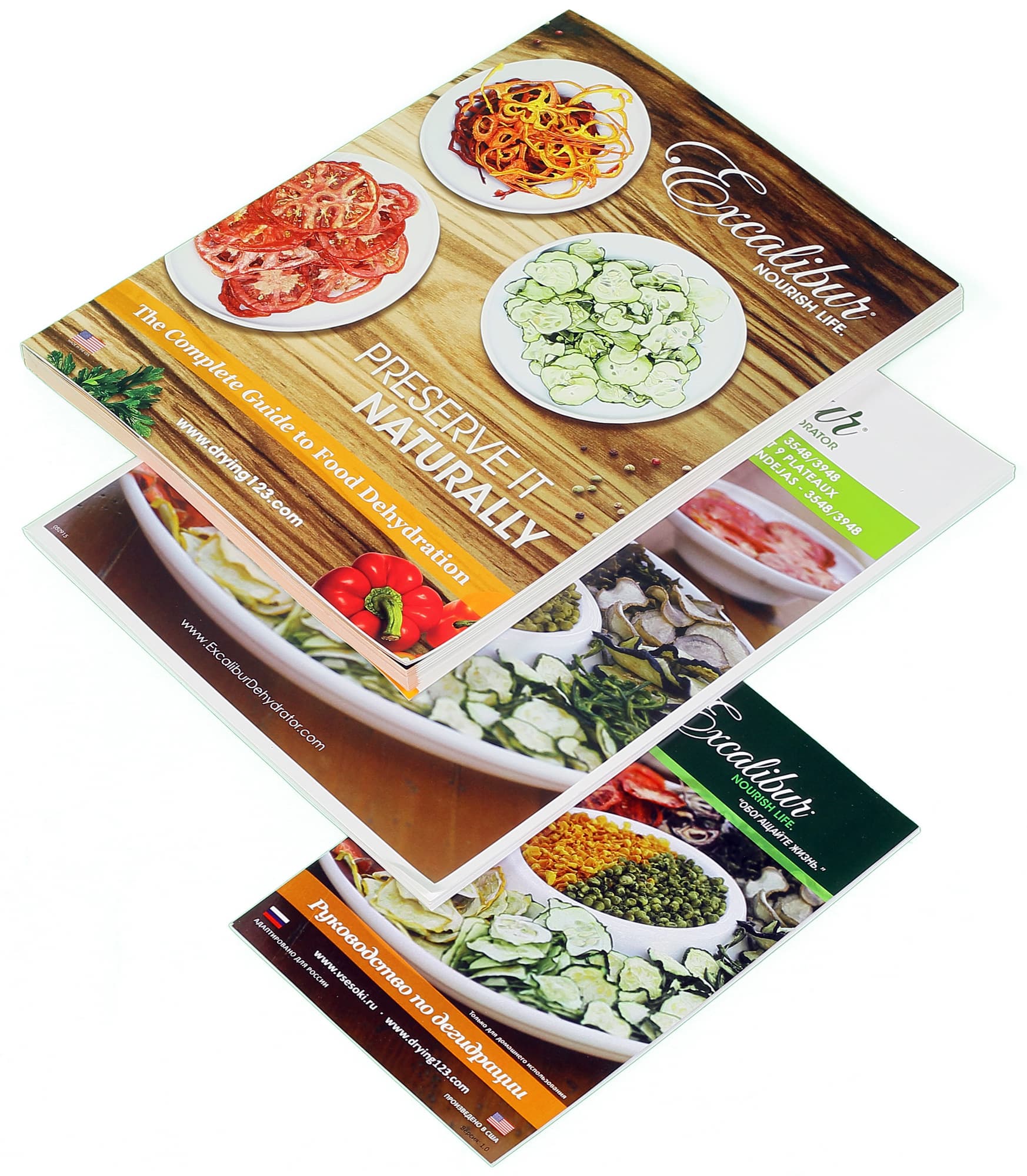 Инструкция, а в особенности, сопроводительная книга к дегидратору Excalibur 4948CDFB — это, без сомнения, настоящее произведение искусства. Не отпугнуло нас даже отсутствие русского языка: инструкция содержит информацию на английском, французском и испанском, дополнительная книга — только на английском языке.