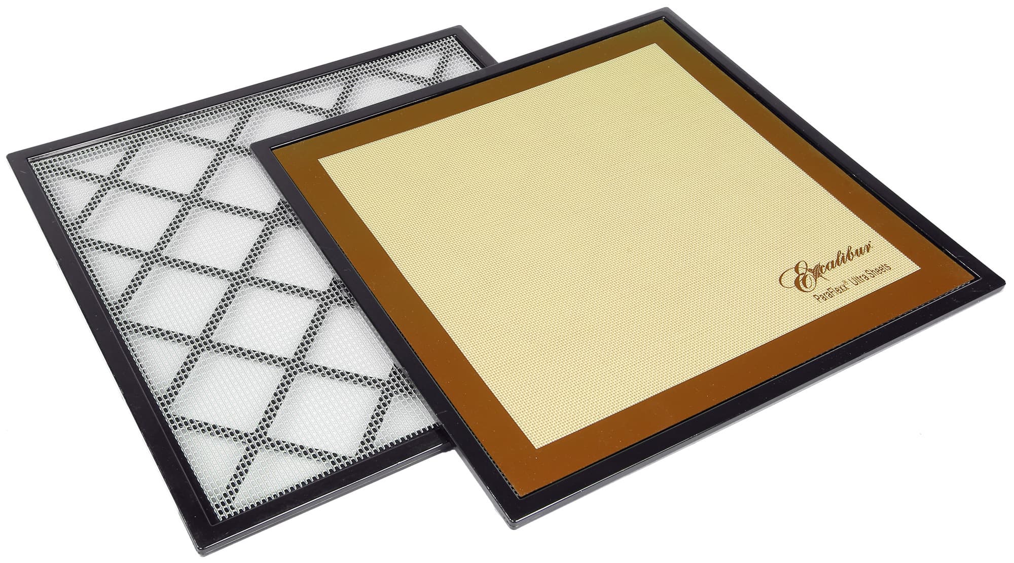 | Аксессуары | пластиковые сетки для поддонов, 2 силиконовых и 2 тефлоновых коврика, англоязычное руководство по дегидрации |