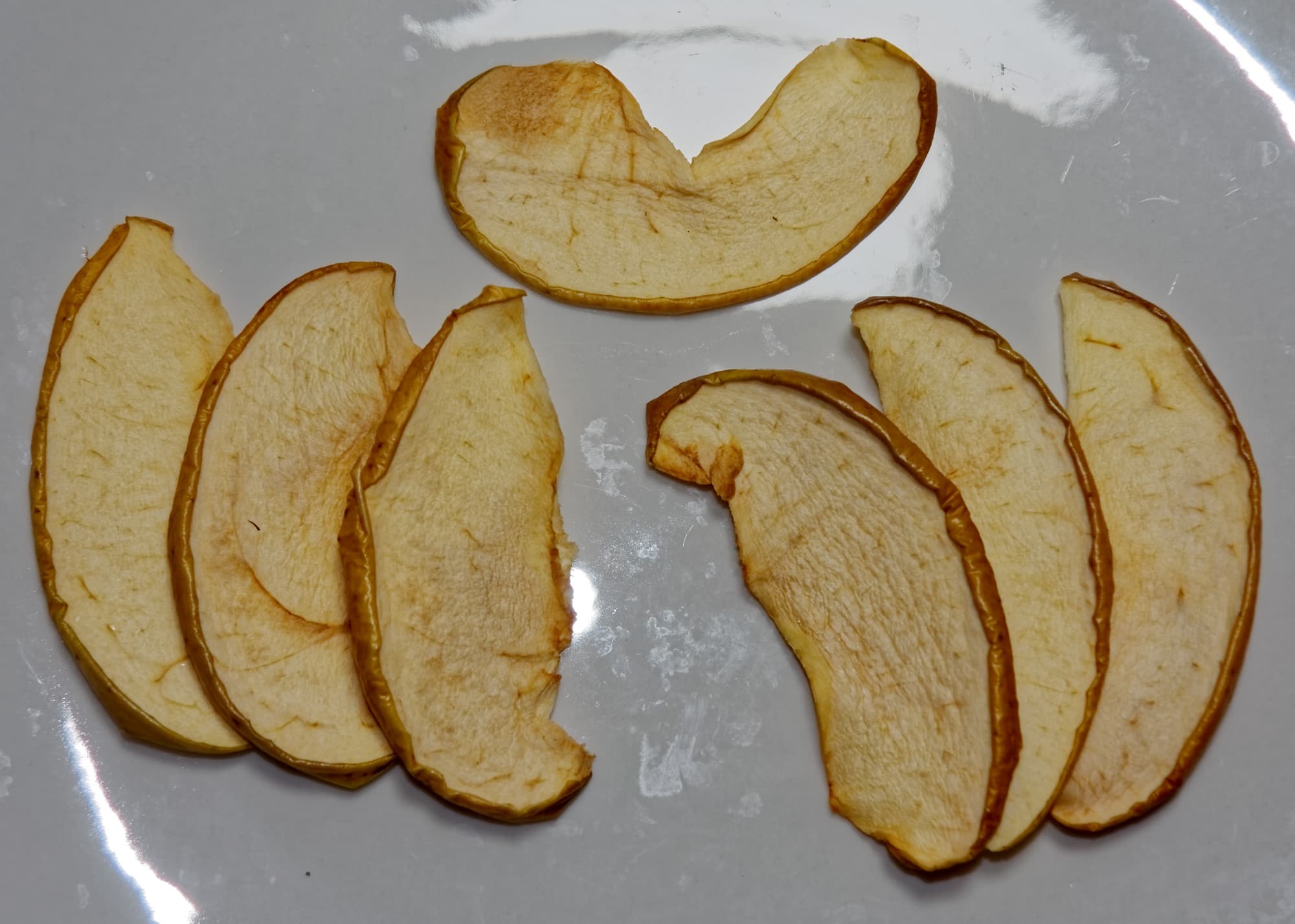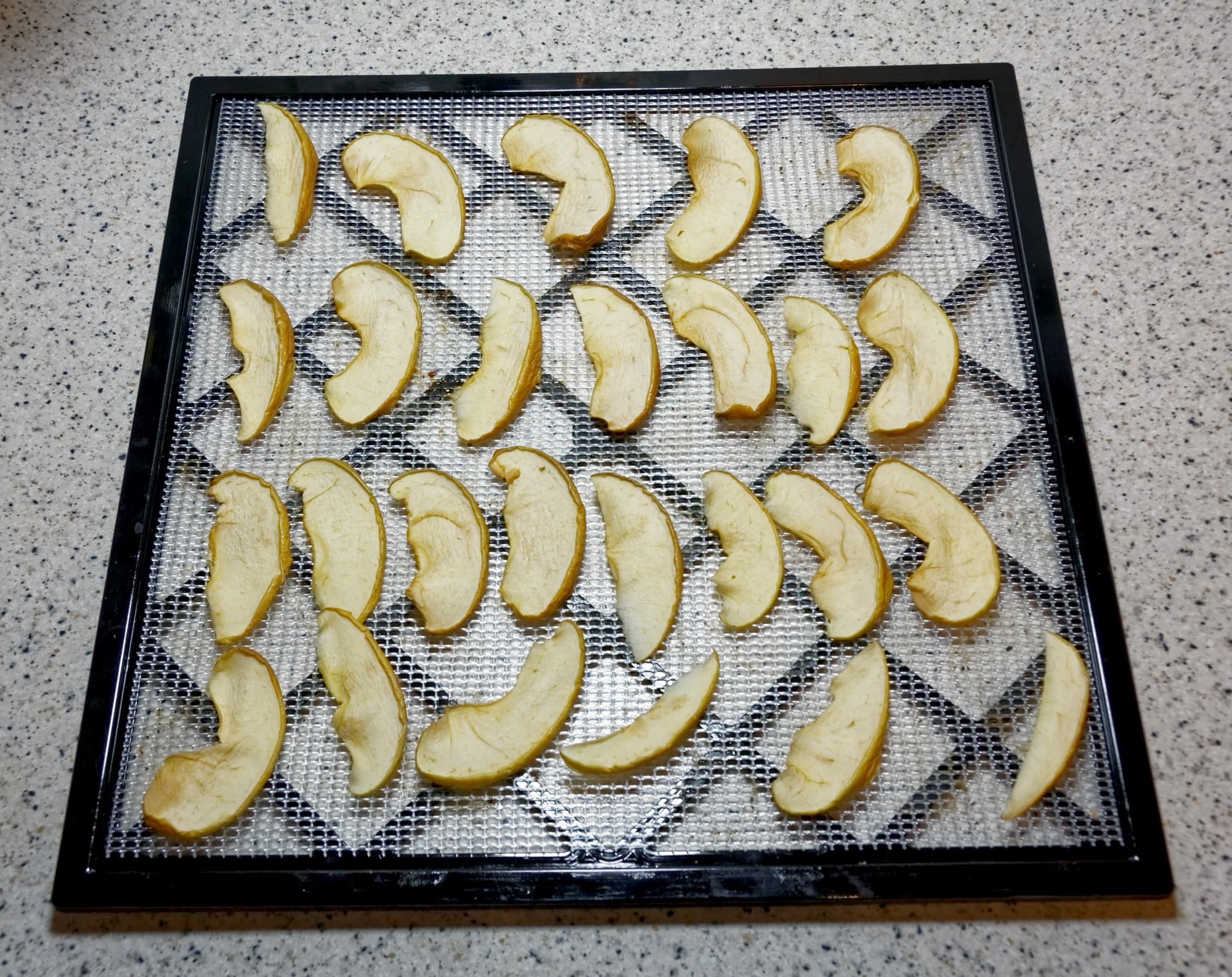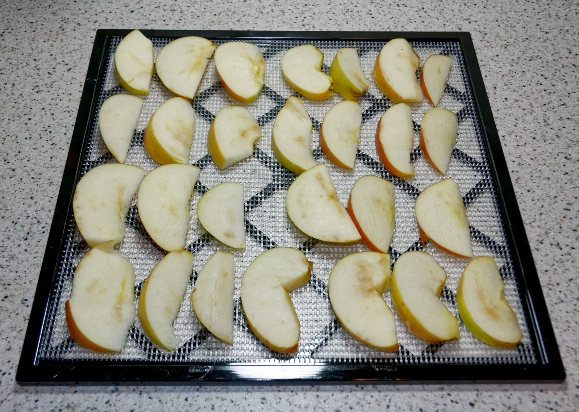 Самый простой тест — сушку яблок — мы проводили в течении 8 часов на температуре 60 градусов. Яблоки были очищены от сердцевины с косточками, нарезаны на дольки среднего размера и равномерно размещены на поддонах.