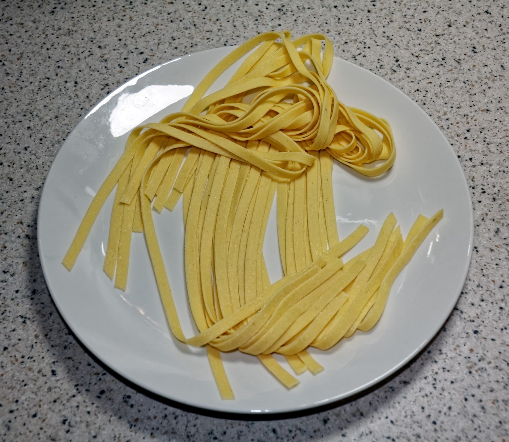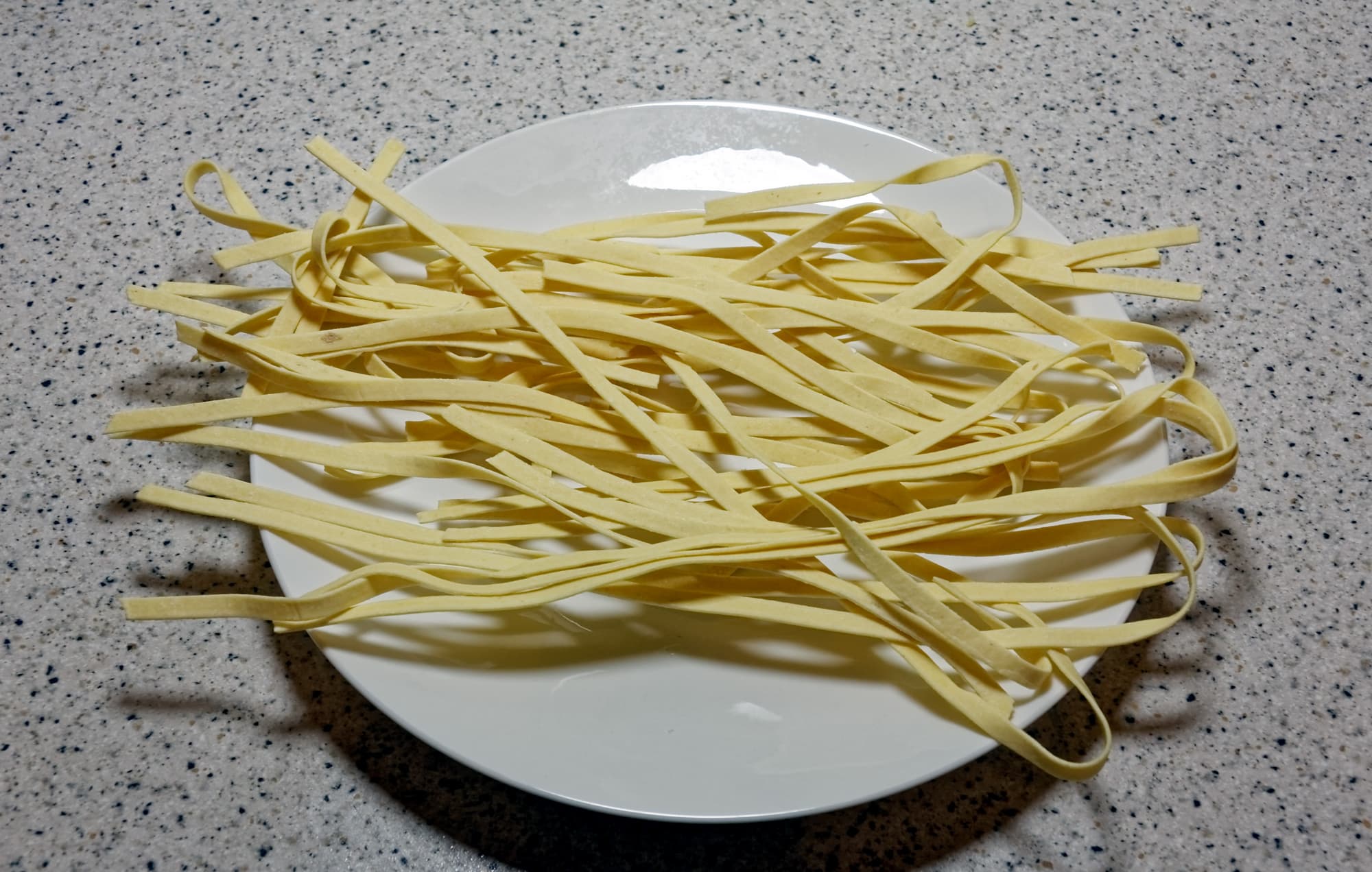 Домашняя паста и дегидратор, очевидно, созданы друг для друга. Для этого теста мы приготовили домашнюю лапшу из муки твердых сортов пшеницы (100 г муки, 1 яйцо, соль по вкусу).