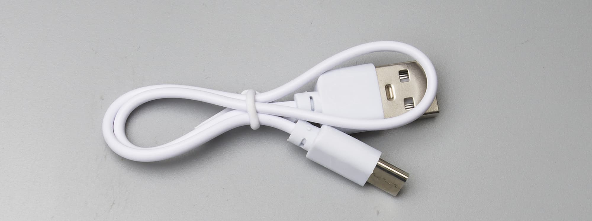 Для подзарядки в комплекте предусмотрен небольшой 25-сантиметровый USB-шнур. Адаптера питания, как водится, нет.