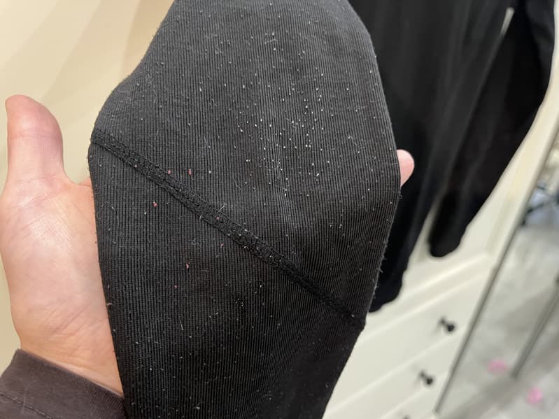 На данной термокофте было также множество катышков, но все они были оформившиеся — круглые и без пушащихся волокон.