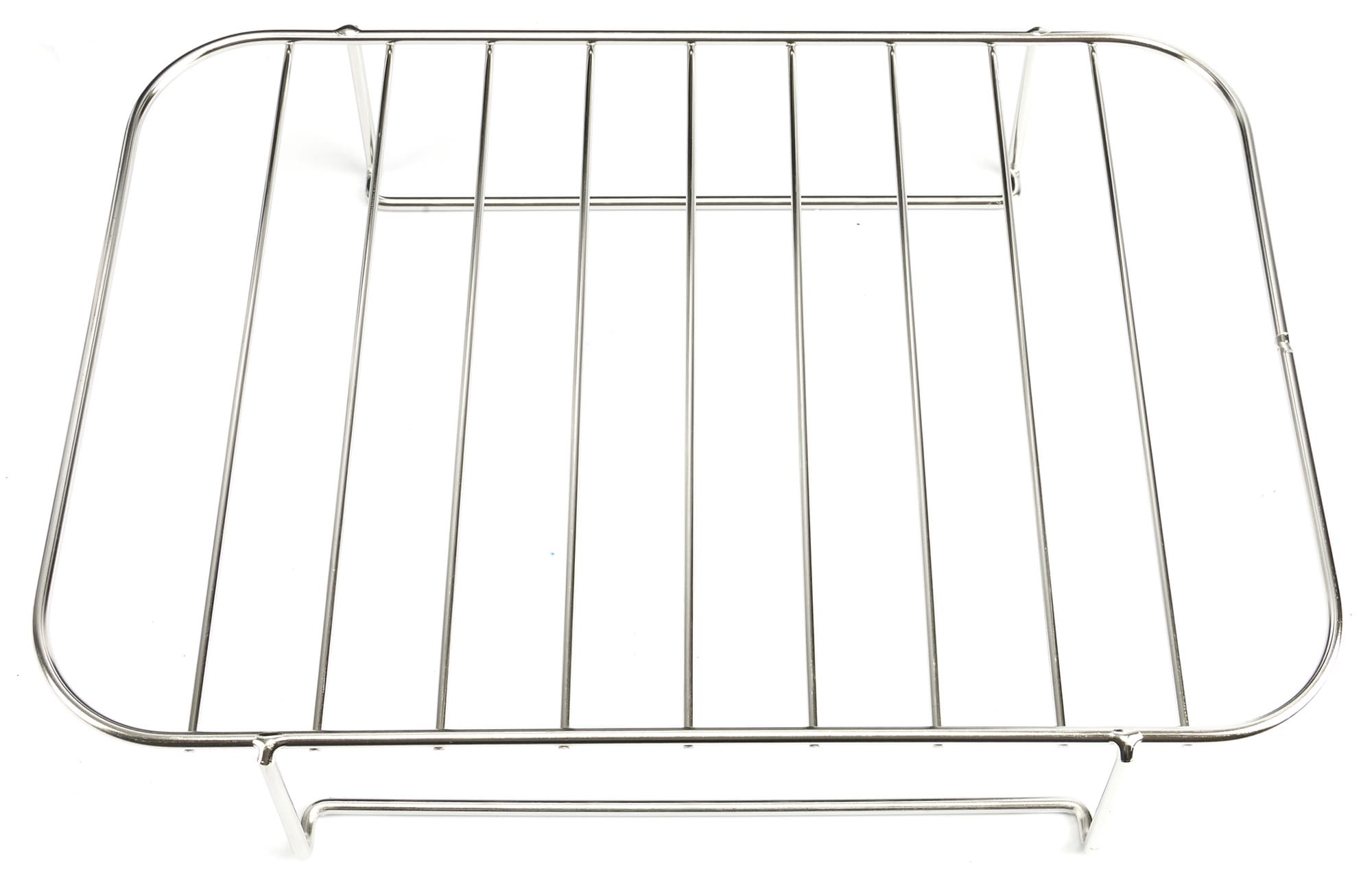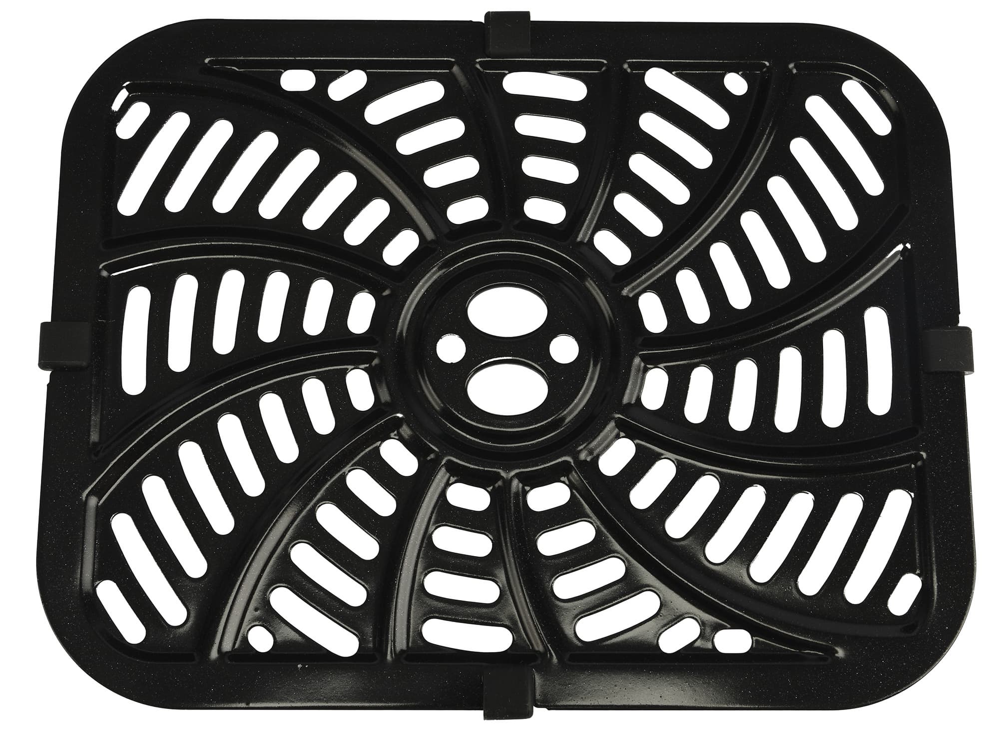Для каждого поддона имеется по одной металлической решетке. Она представляет собой металлическую пластину с перфорацией и антипригарным покрытием.
