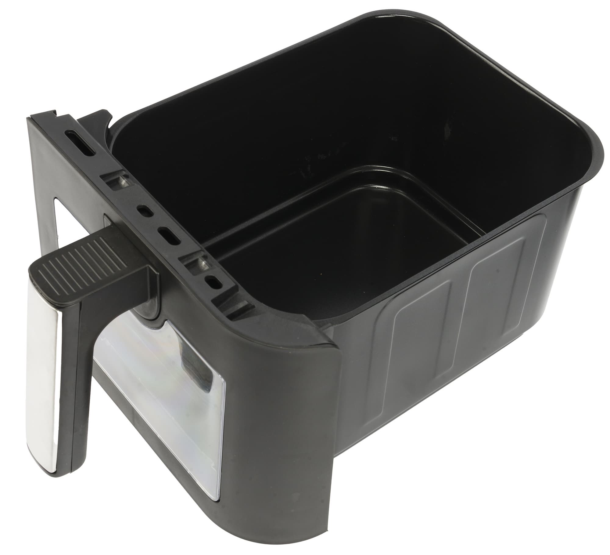 Поддоны имеют объем по 5,5 литров и весят по 1 кг каждый. Передние панели у них сделаны из черного пластика и имеют прозрачные пластиковые окошки, внутри окошко дублируется уже из стекла, а сами емкости для приготовления сделаны из металла с антипригарным покрытием, что существенно облегчает его очистку. Никаких острых углов внутри, все скругленное.