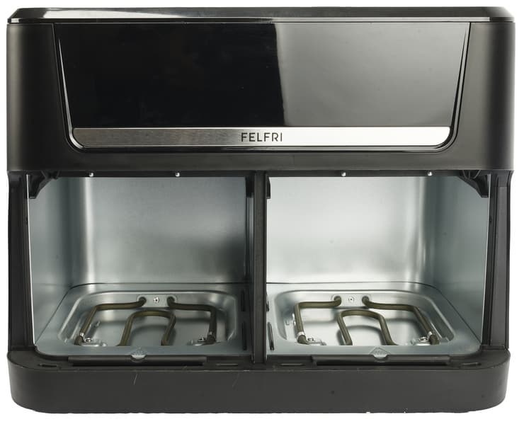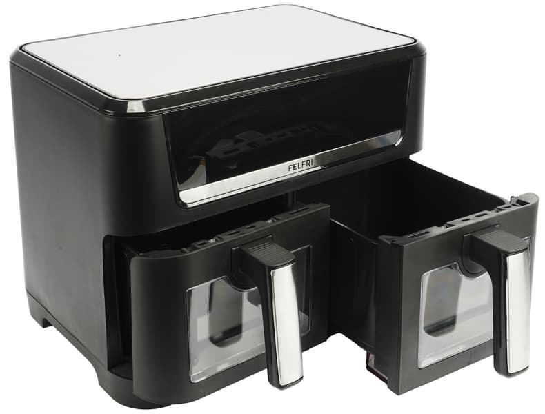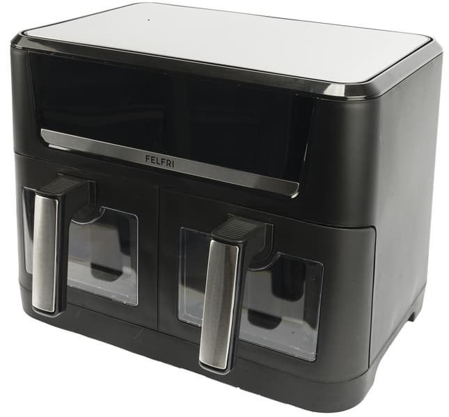 Аэрогриль Felfri FF‑AF‑04 — отличный прибор для любителей тратить на приготовление пищи минимум времени. За счет небольших камер и конвекции устройство очень быстро достигает высоких температур. А благодаря антипригарному покрытию чаш готовить в них можно с минимальным количеством масла или вообще без такового, что делает блюда более полезными (ну, или, как минимум, менее жирными).