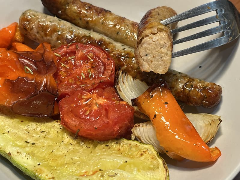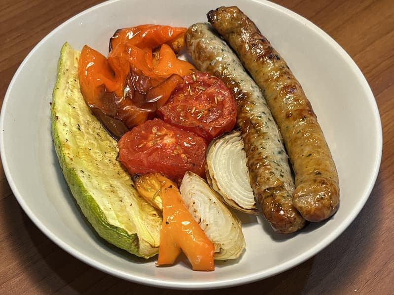 Колбаски и овощи-гриль