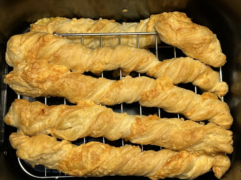 Спустя 15 минут «сырные палочки» были готовы, но показались нам бледноватыми, поэтому мы добавили еще 3 минуты.