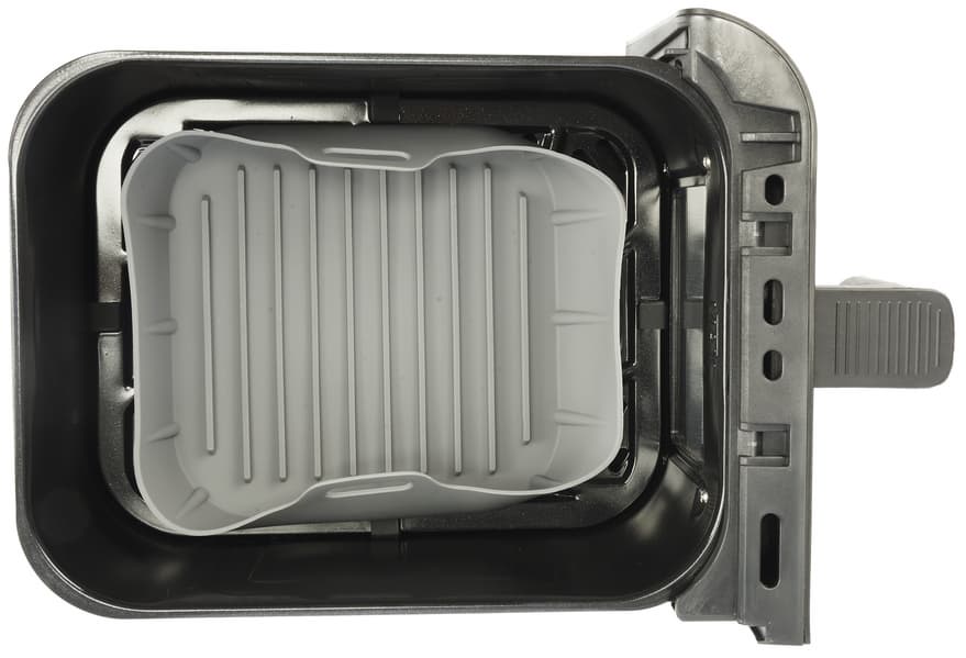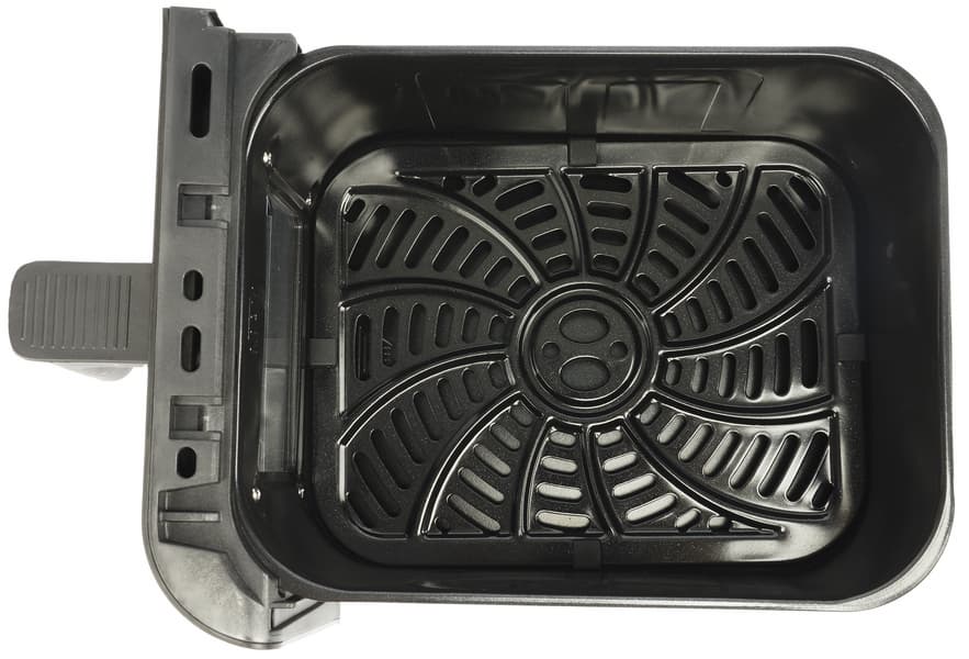 Дизайн у аэрогриля неброский, но аккуратный. Скругленные углы и классический черный цвет в сочетании с серебристыми вставками делают внешний вид устройства универсальным почти для любого интерьера.