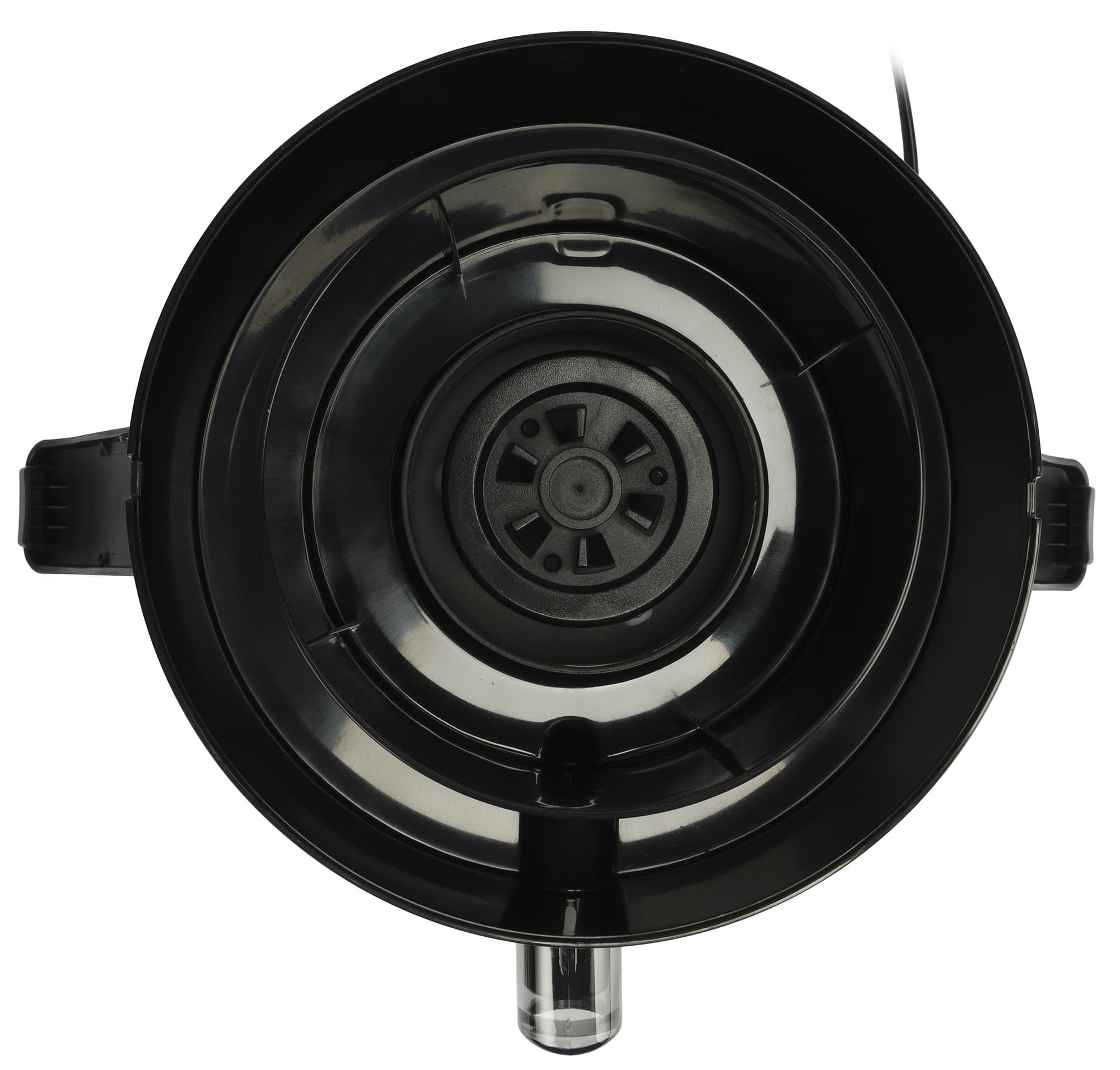 В инструкции производитель называет эту часть прибора средней кольцевой деталью. Он выполнен из черного пластика и имеет отверстие посередине — место соединения фильтра и моторного блока. Вокруг данного отверстия находятся высокие стенки, так как именно в держатель для фильтра попадает сок перед тем как вытечь через носик в контейнер.