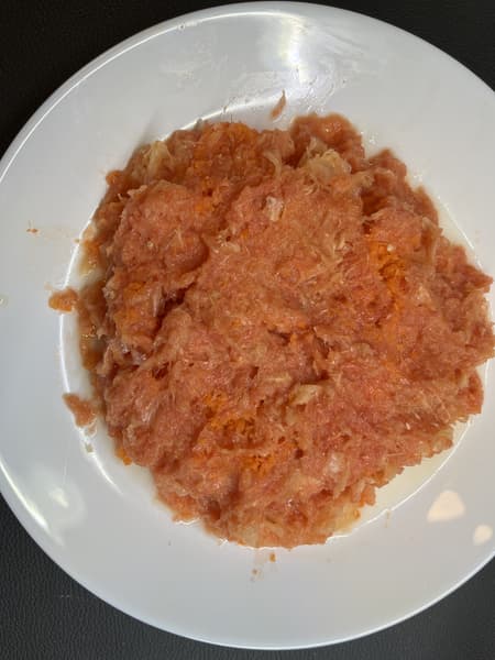 Грейпфрут молниеносно и легко отжался в нашей соковыжималке, но жмых получился очень влажным, что часто бывает с грейпфрутами, так как они мягкие и быстро уничтожаются ножом, не успевая отдать весь сок. Это в любом случае расстраивает, ведь это означает, что часть сока мы просто-напросто теряем.