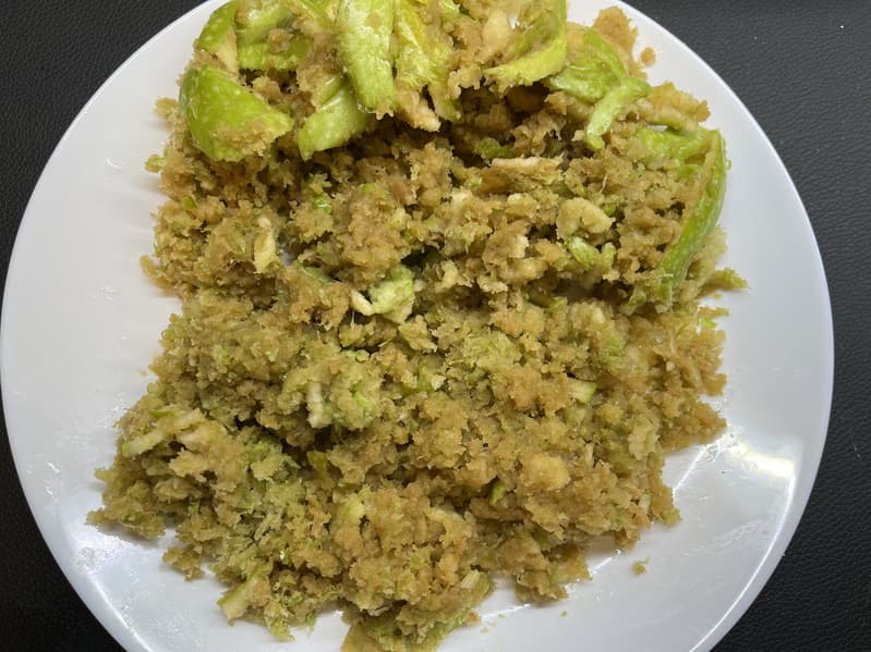 Контейнер для жмыха нас в этот раз порадовал чуть меньше. Мы обнаружили множество маленьких, не до конца переработанных и влажных кусочков капустных листьев. А значит, и сока могло бы получиться побольше.