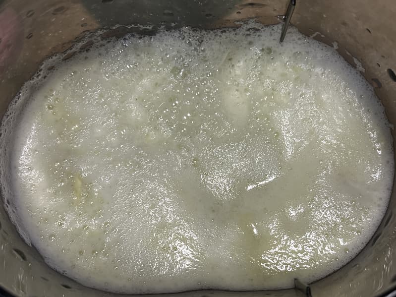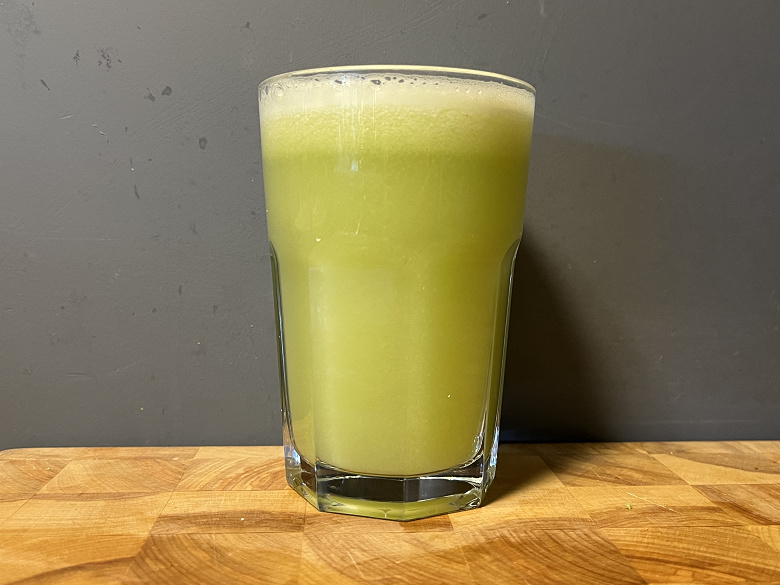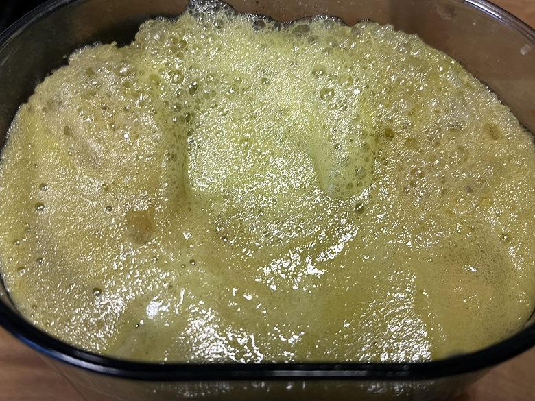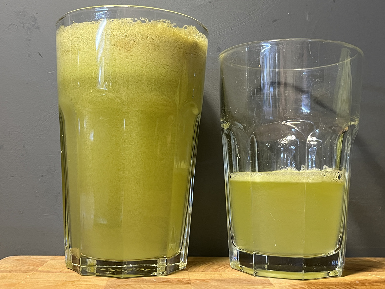 Мы достаточно быстро получили отличный результат — почти прозрачный зеленый сок с большим количеством густой, постепенно оседающей пены.