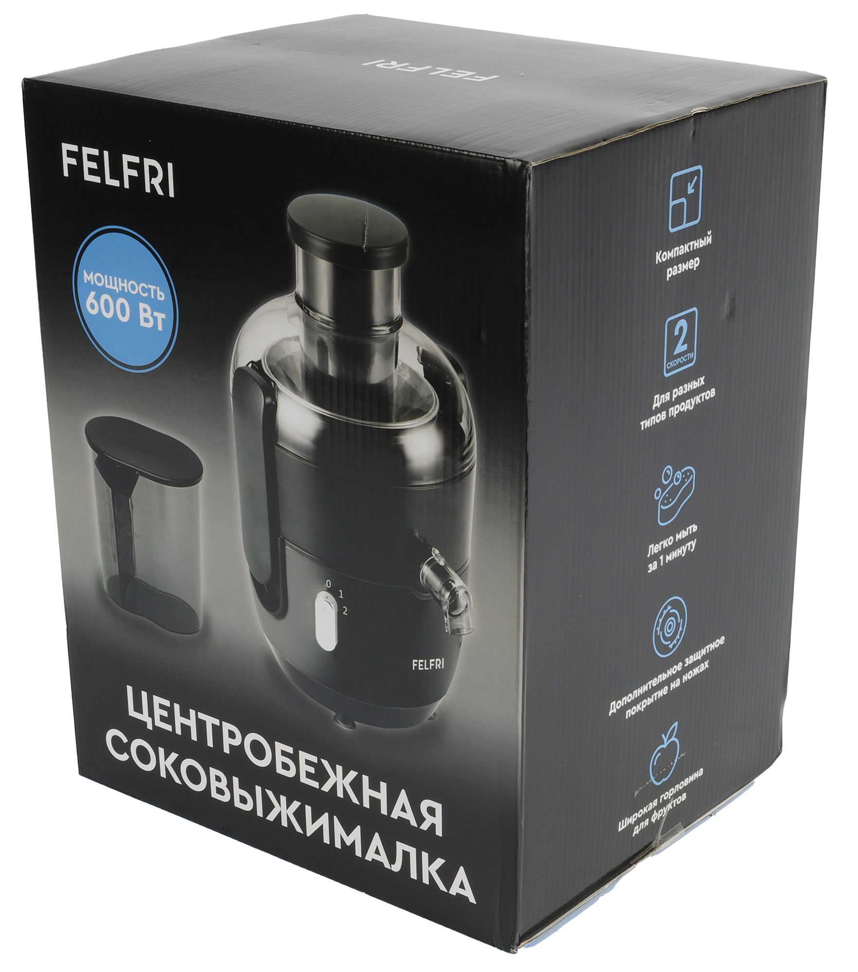 Две скорости работы позволяют адаптировать процесс отжима под разные типы продуктов. Фильтр из нержавеющей стали с нитрид-титановым покрытием обеспечивает чистоту сока, к тому же уменьшая вероятность его окисления, а защита от перегрева гарантирует безопасность использования. Съемные детали легко моются, что упрощает уход за устройством. Компактный и эргономичный дизайн делает Felfri FF-J-10 удобной в хранении и эксплуатации.