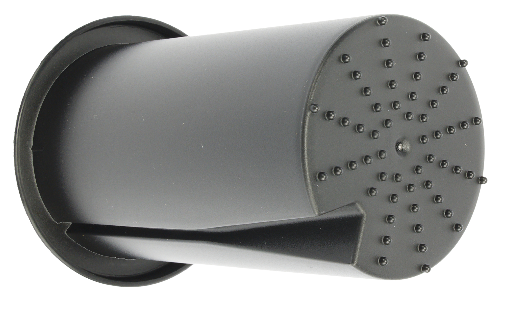 Толкатель сделан из черного противоударного пластика. Сбоку у него имеется углубление для выступа, находящегося в загрузочной горловине. А снизу мы видим объемные точки, предназначенные для того, чтобы к толкателю не прилипали мокрые ингредиенты.