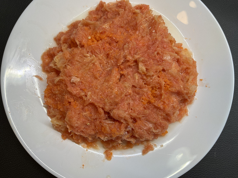 Весь процесс (с учетом выпрыгивающих кусочков) занял у нас 2,5 минуты, что не может не сказаться на результатах тестирования. Однако хотим отметить, что при этом сам отжим происходил очень быстро и мы получили отличный по качеству капустный сок.