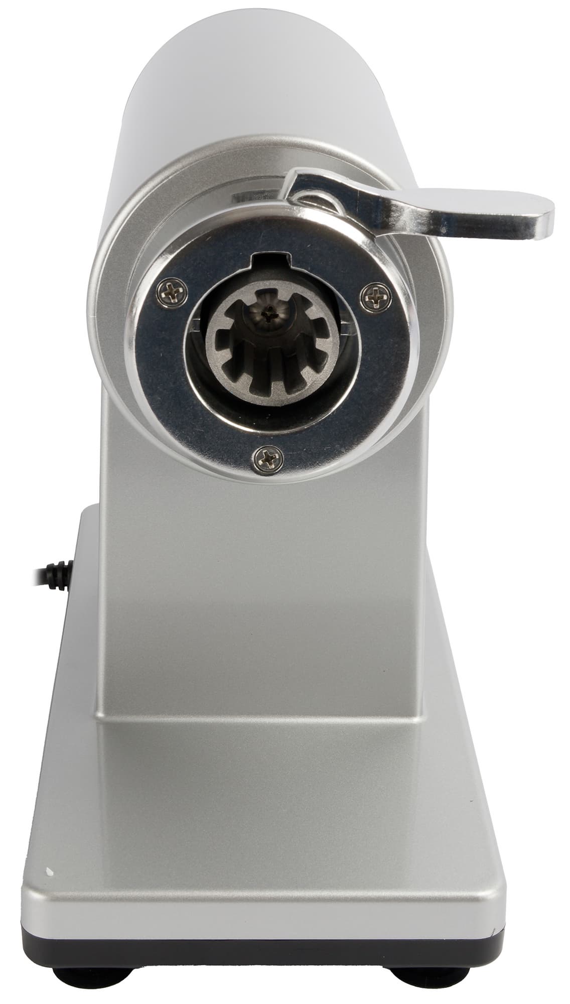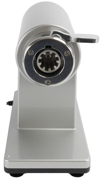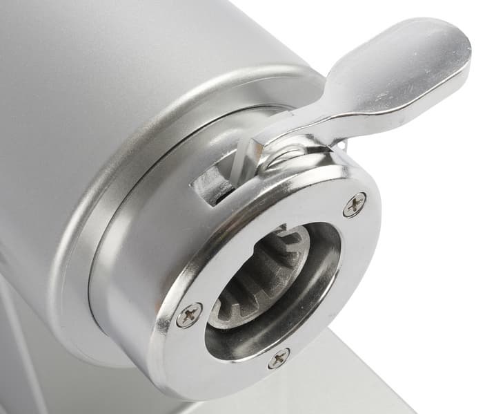 Гнездо для мясорубки имеет металлический коннектор для установки вала мясорубки. Оно расположено на торцевой части моторного блока.
