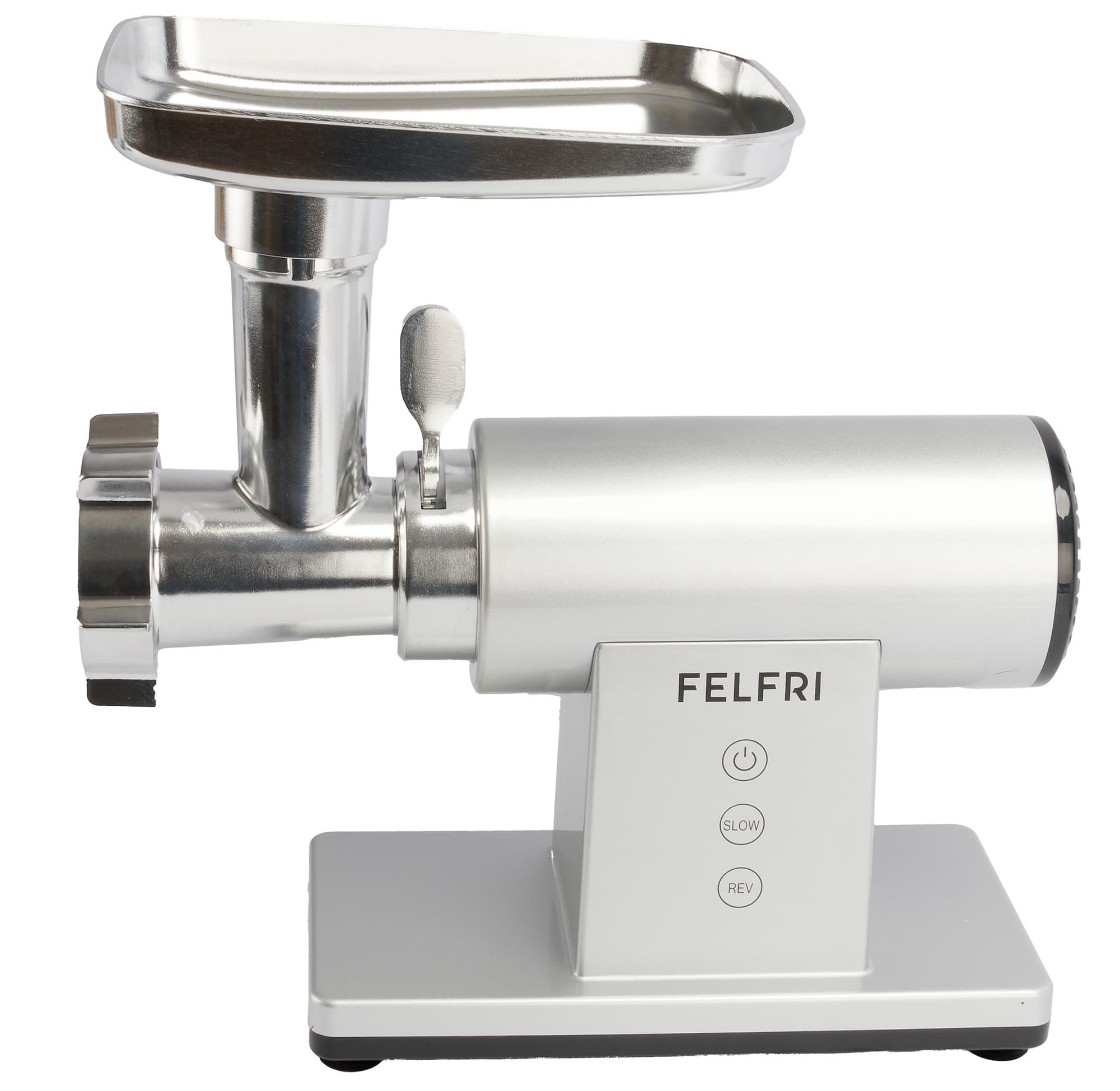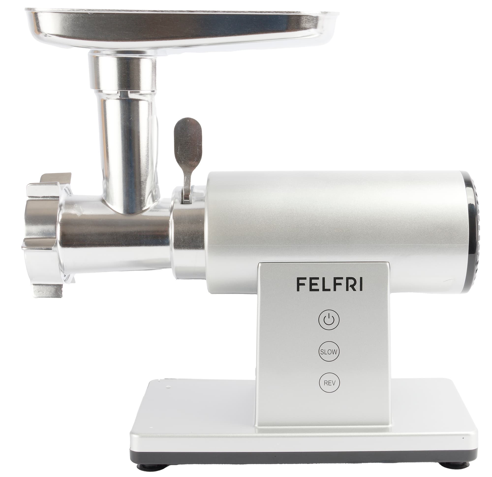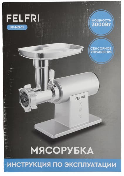 Felfri FF-MG-11 — это классическая электрическая мясорубка с расширенной комплектацией. Модель имеет дополнительный блок-овощерезку, поэтому рассчитана не только на переработку мяса, но и на работу с овощами и другими продуктами за счет сменных насадок.
