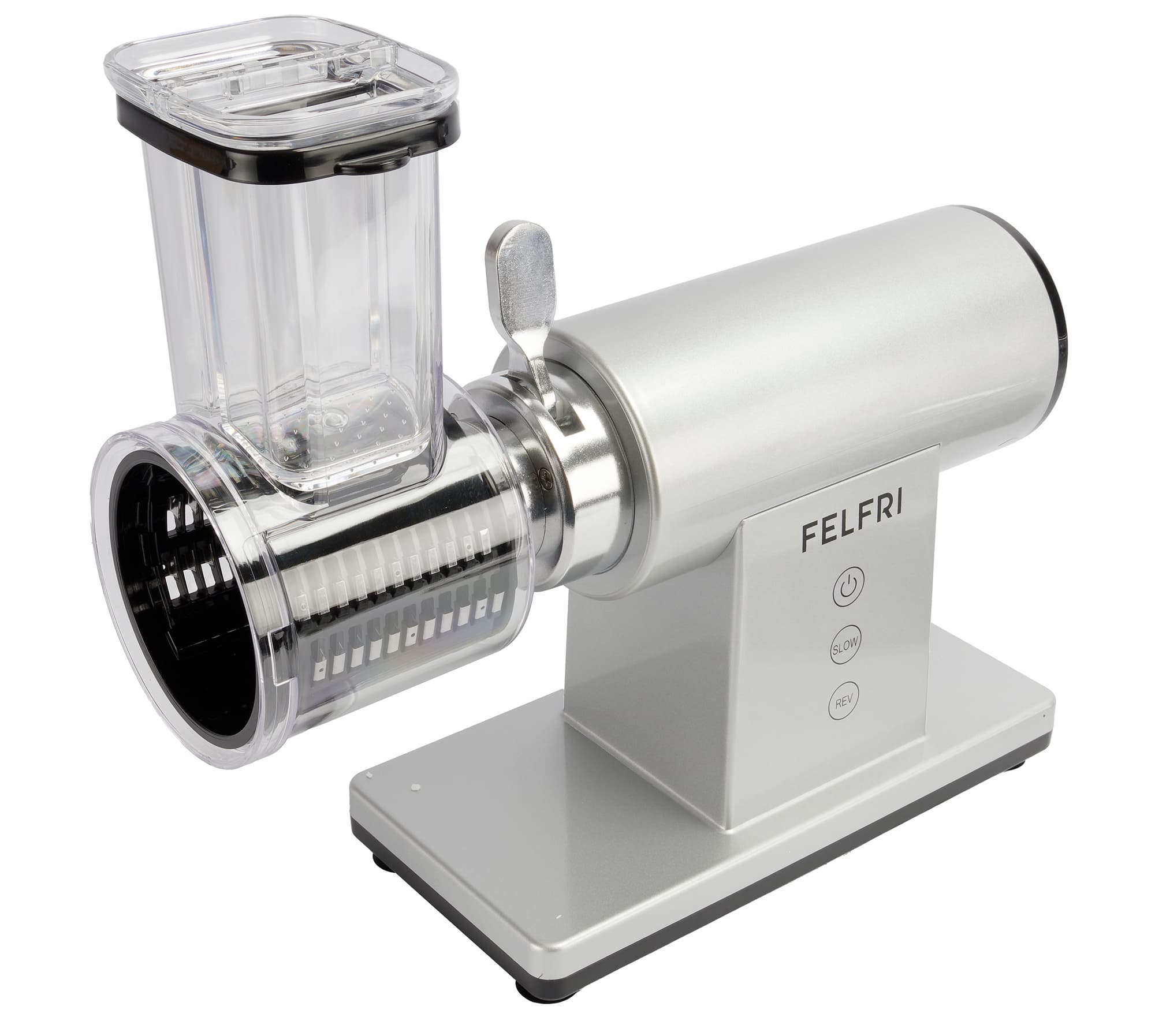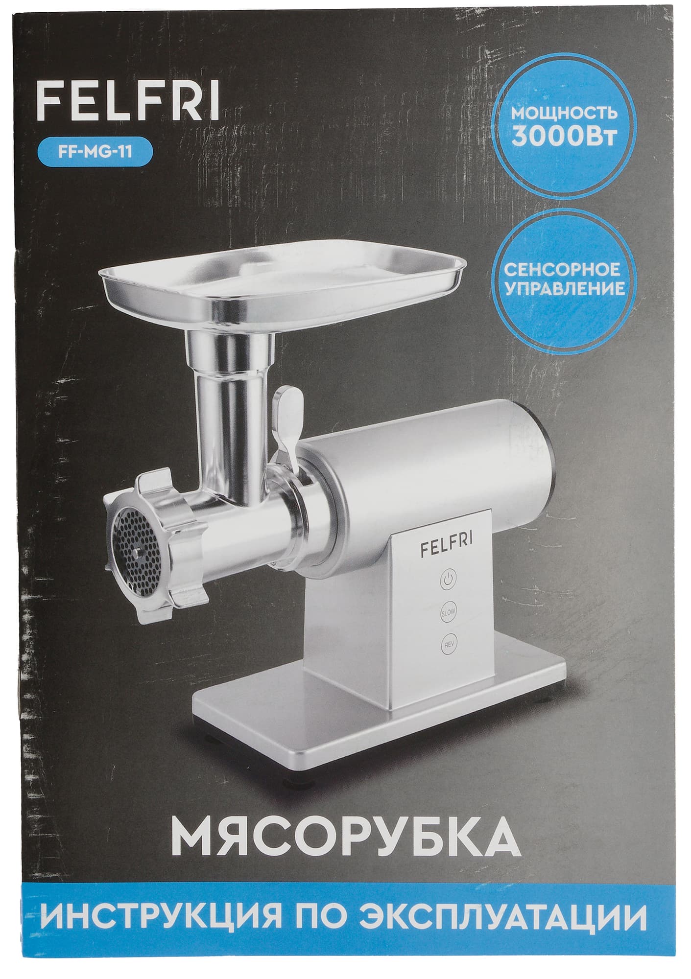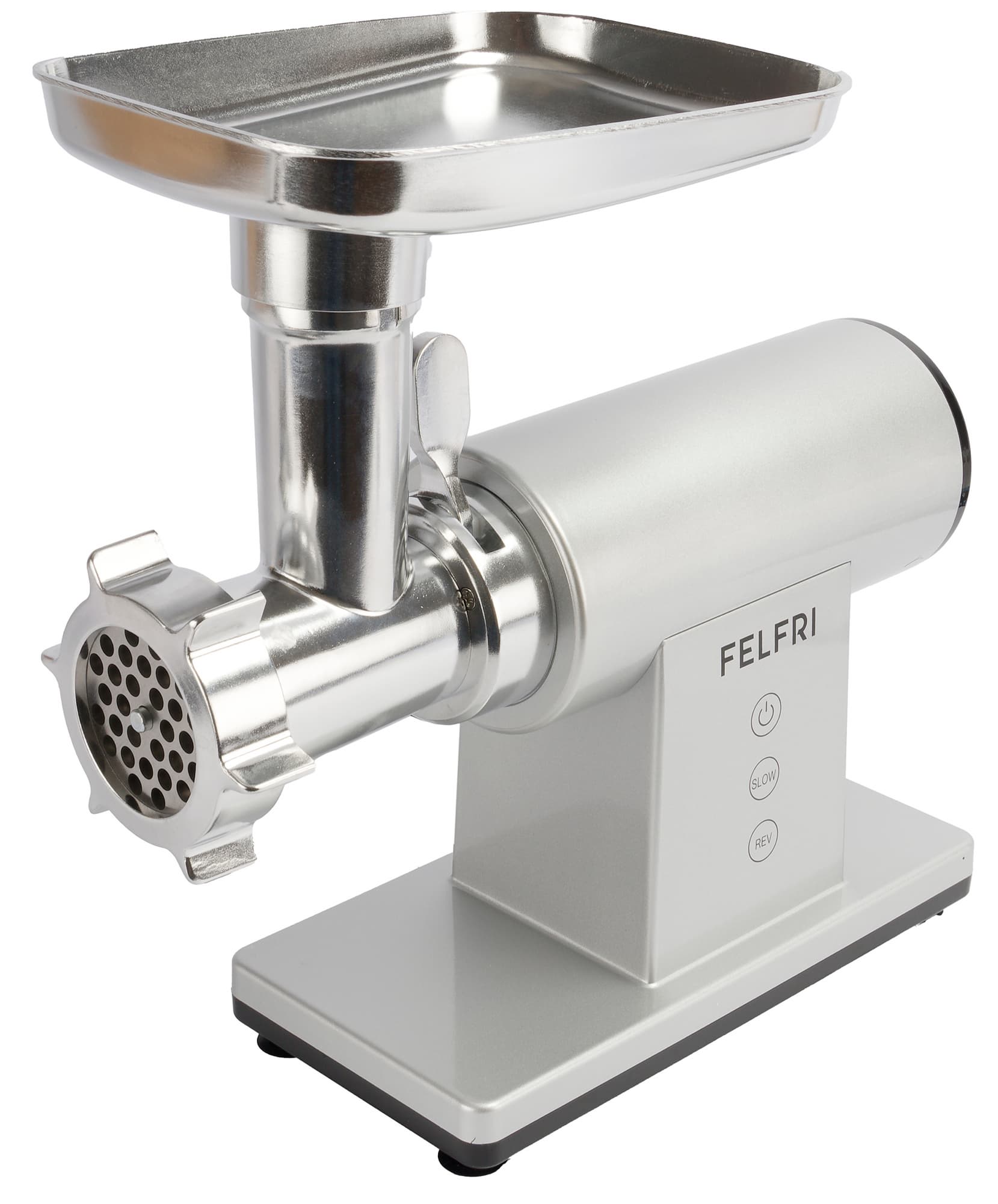 Felfri FF-MG-11 — это классическая электрическая мясорубка с расширенной комплектацией. Модель имеет дополнительный блок-овощерезку, поэтому рассчитана не только на переработку мяса, но и на работу с овощами и другими продуктами за счет сменных насадок.