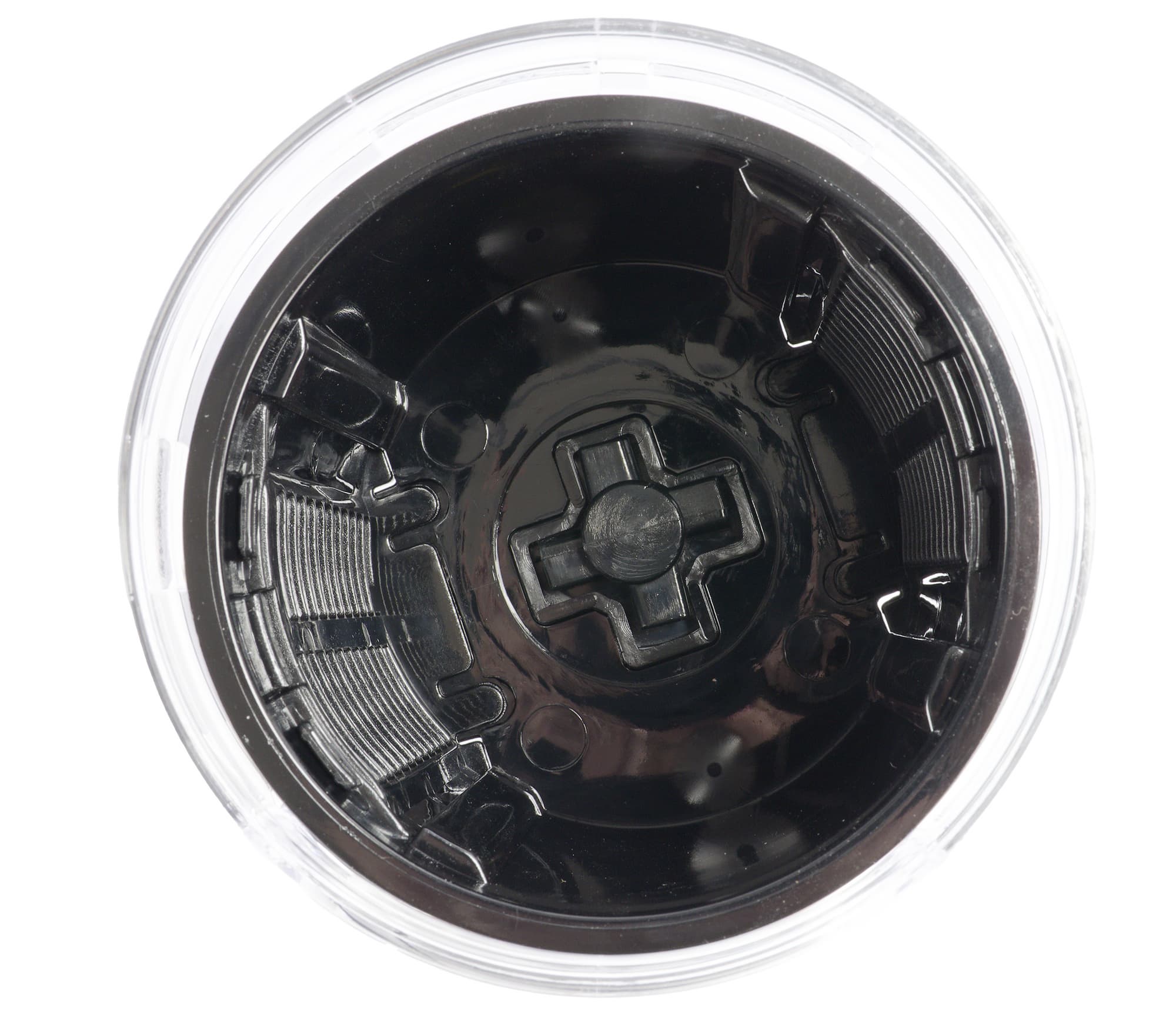 Внутри блока основание терки закрепляется при помощи пластикового крестового фиксатора на дне.