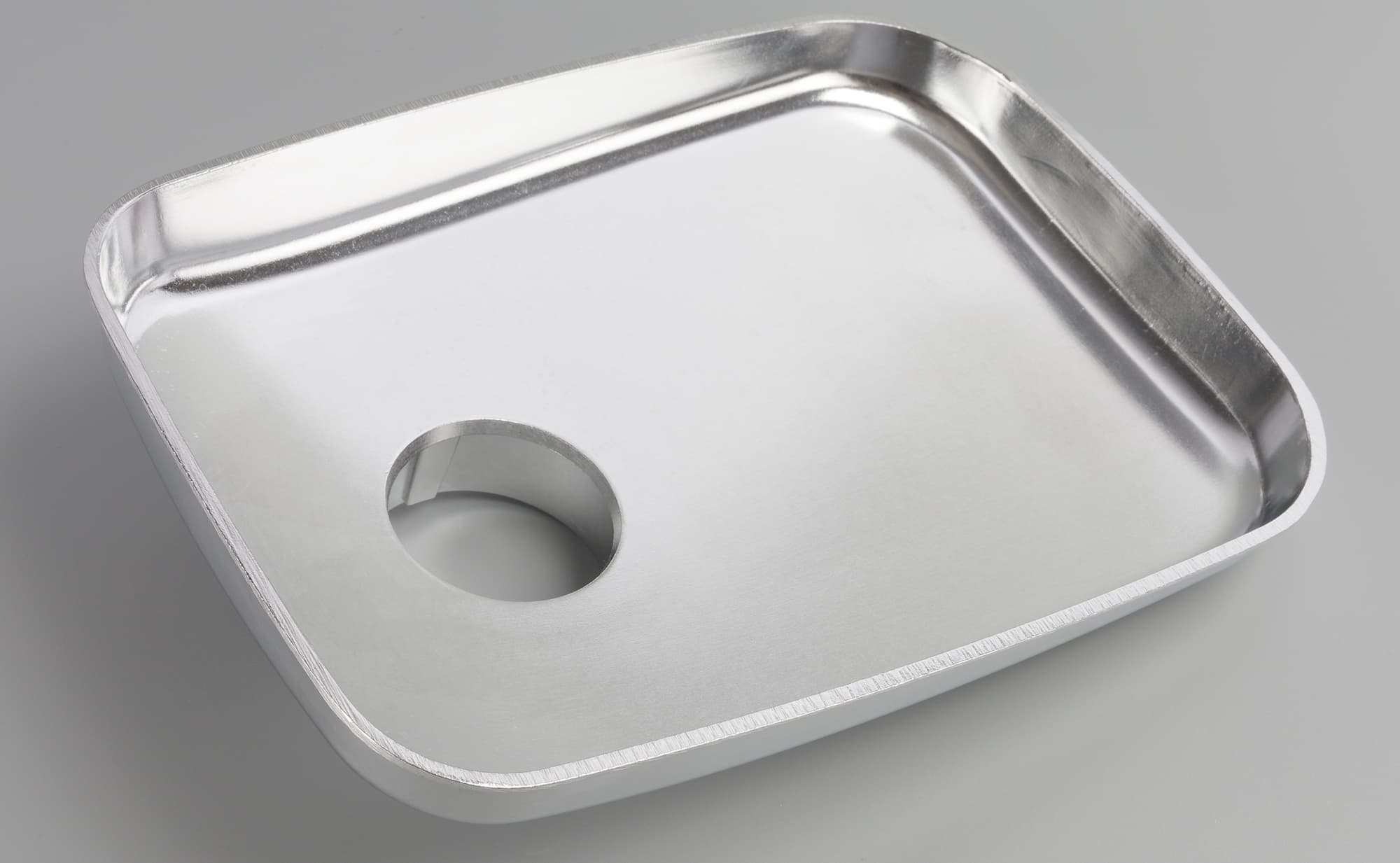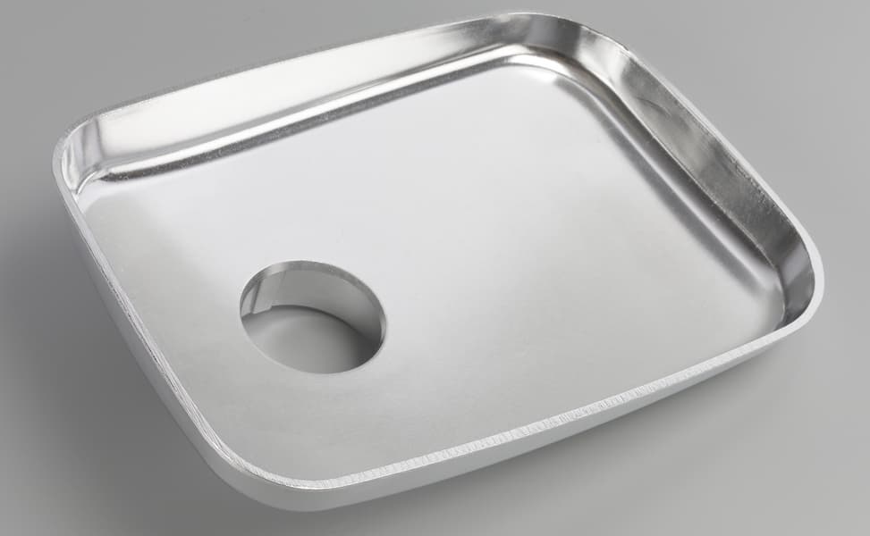 Загрузочный лоток прямоугольной формы с закругленными углами имеет размеры 22×14 см по самым выступающим местам. Он полностью металлический.