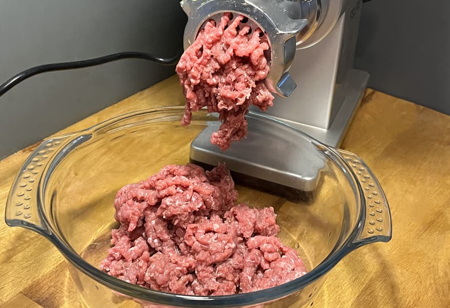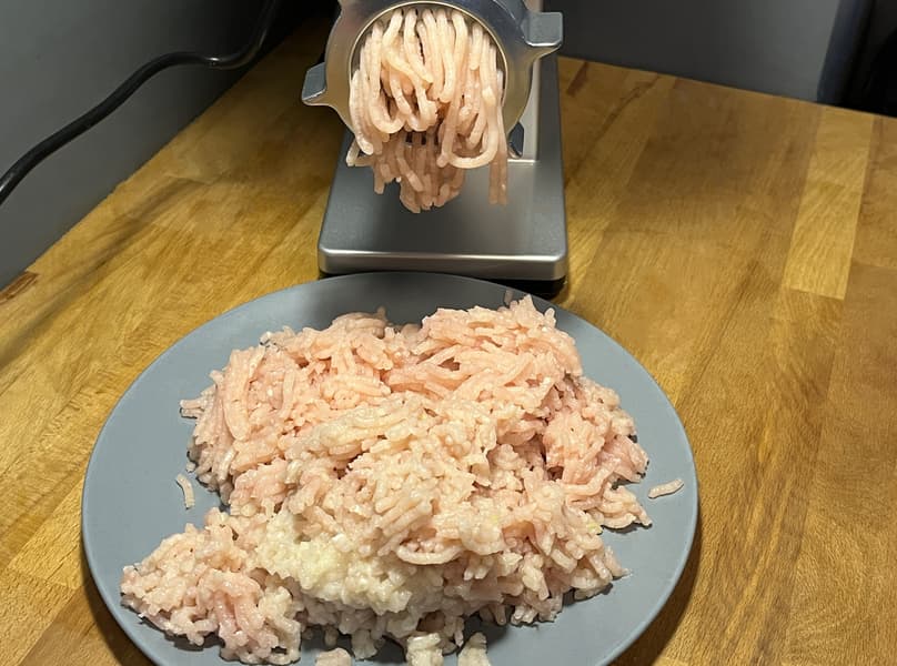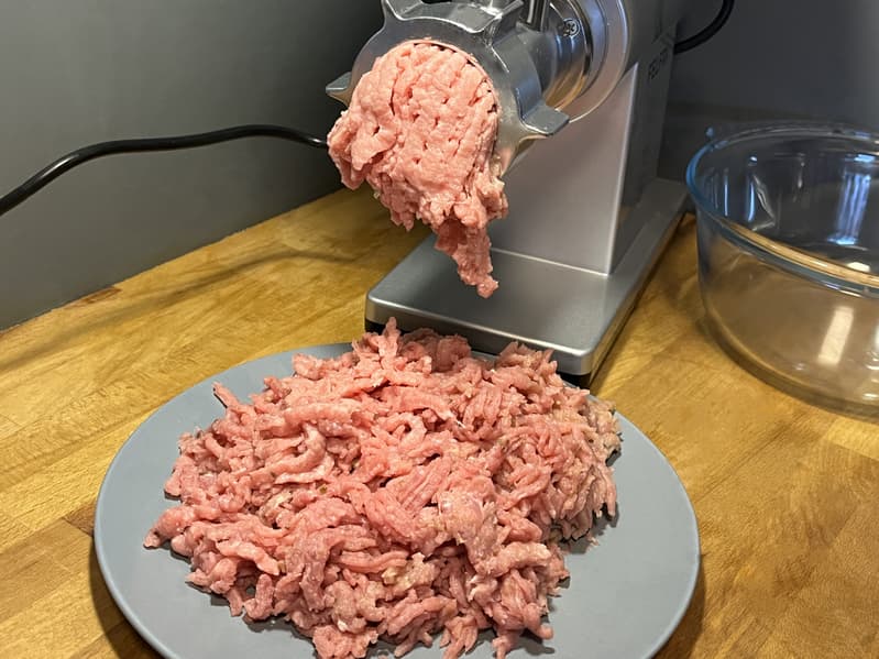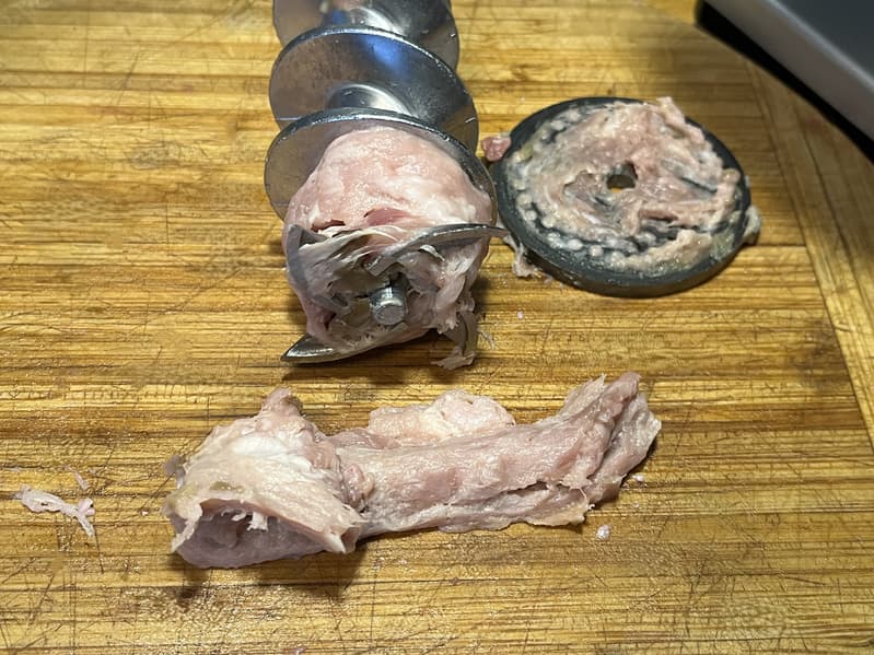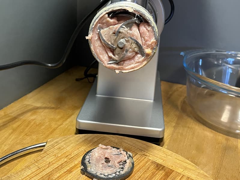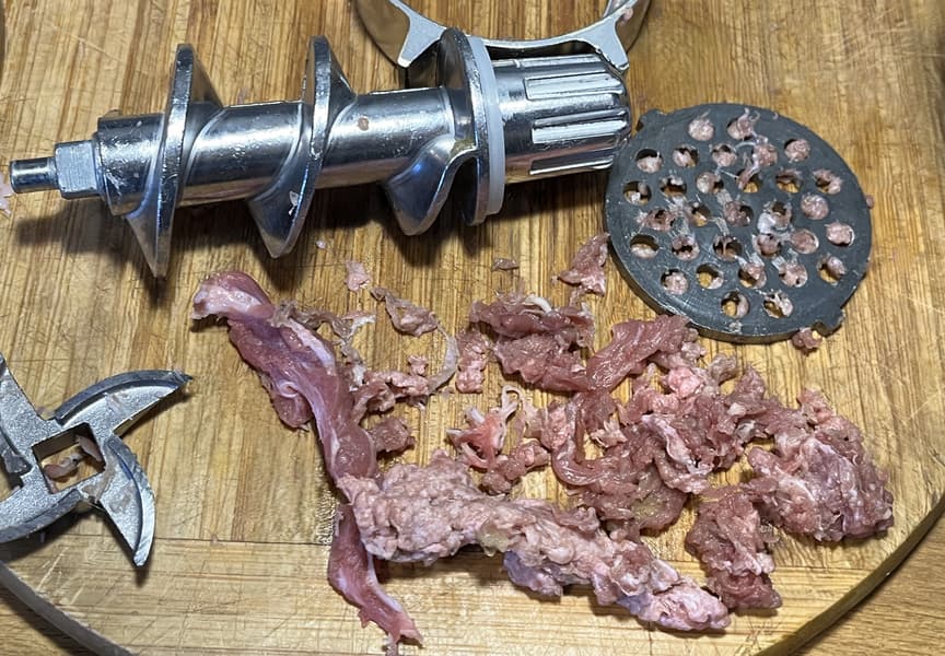 Мясорубка без проблем справилась с таким мясом, но 1 килограмм был нарублен уже за 2 минуты. Не самая высокая скорость, но качество фарша для столь жилистого мяса оказалось вполне приемлемым.