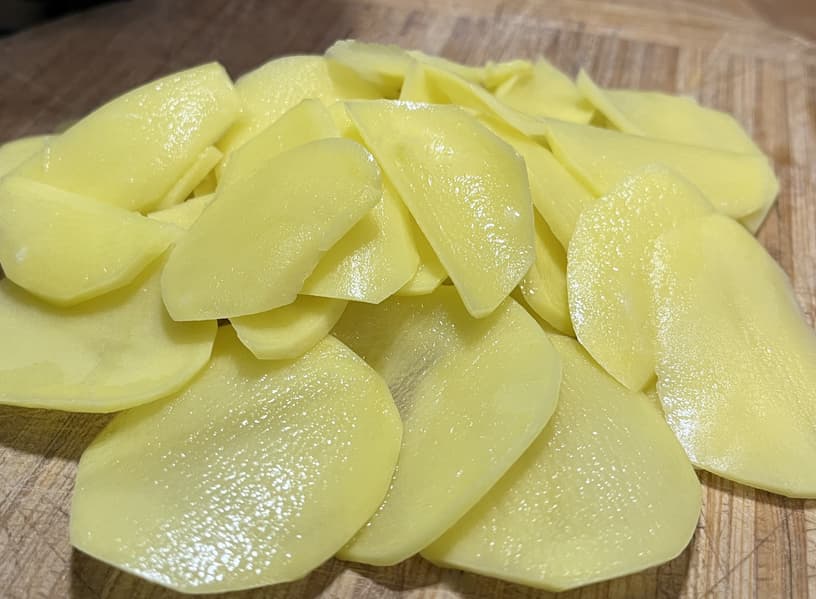 У нас остались последние лезвия из комплекта — длинные прямые. С помощью них мы решили нарезать сырой картофель.