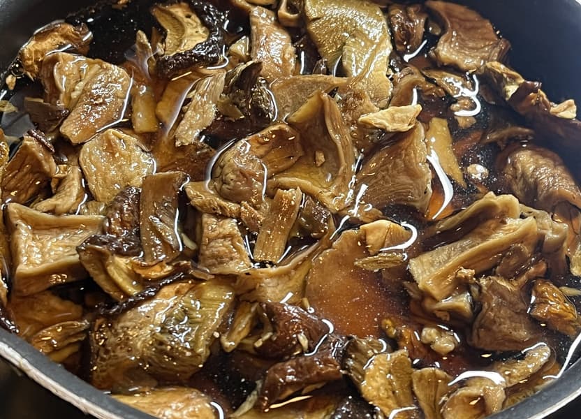 Лесные грибы замочили на час, а затем отварили.