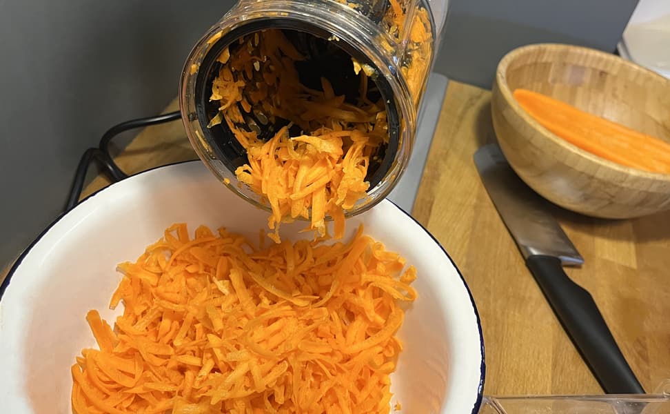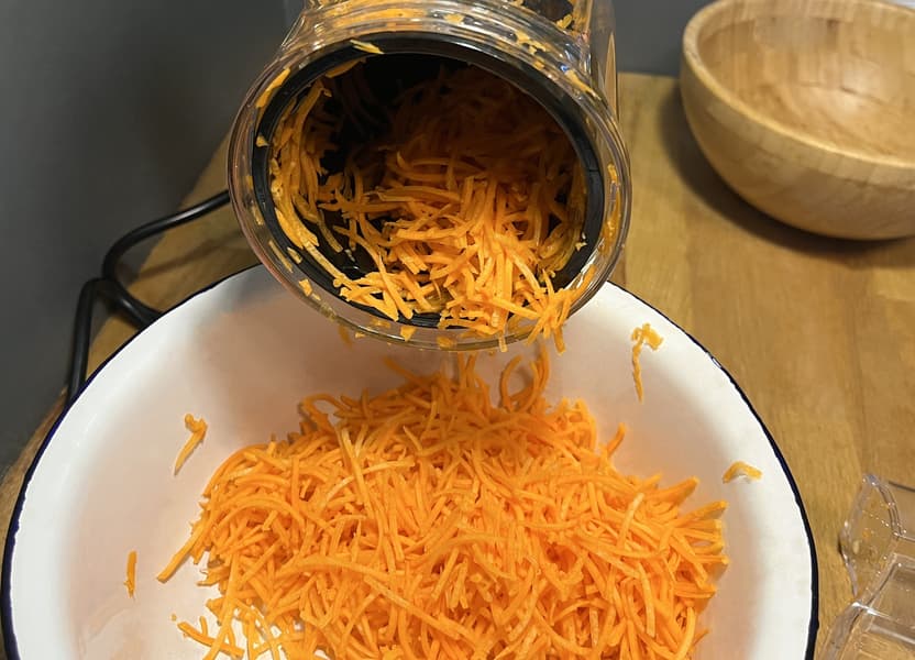 Далее мы взялись за морковь. Ее консистенция, пожалуй, самая удачная для испытания разных лезвий, поэтому мы проверили на ней сразу три комплекта терок.
