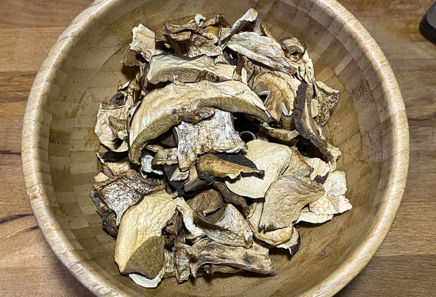 Для данного теста мы подготовили картофель и сушенные грибы, чтобы с помощью мясорубки сделать из них начинку для пирожков или вареников.