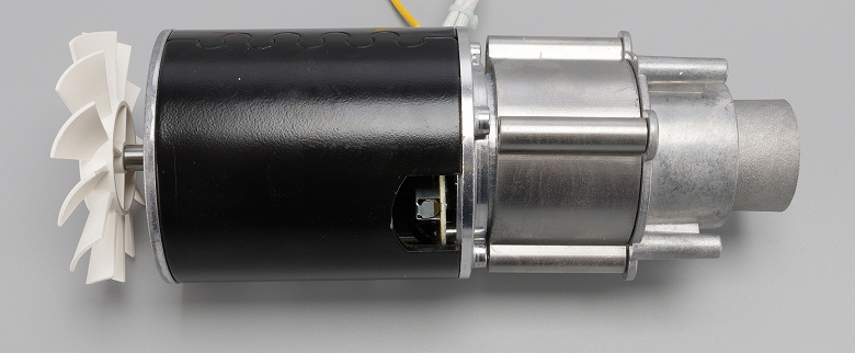 Внутри корпуса находится электромотор с вентилятором, охлаждающий конструкцию, а в передней части расположен редукторный блок в металлическом корпусе.